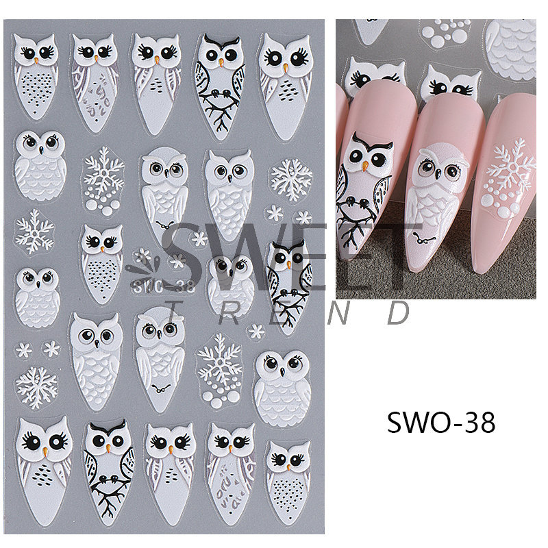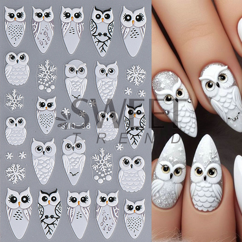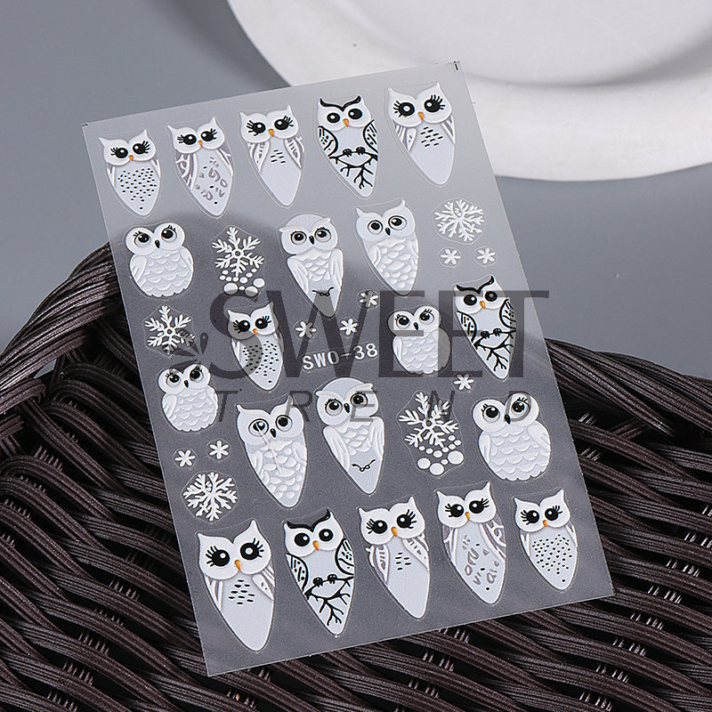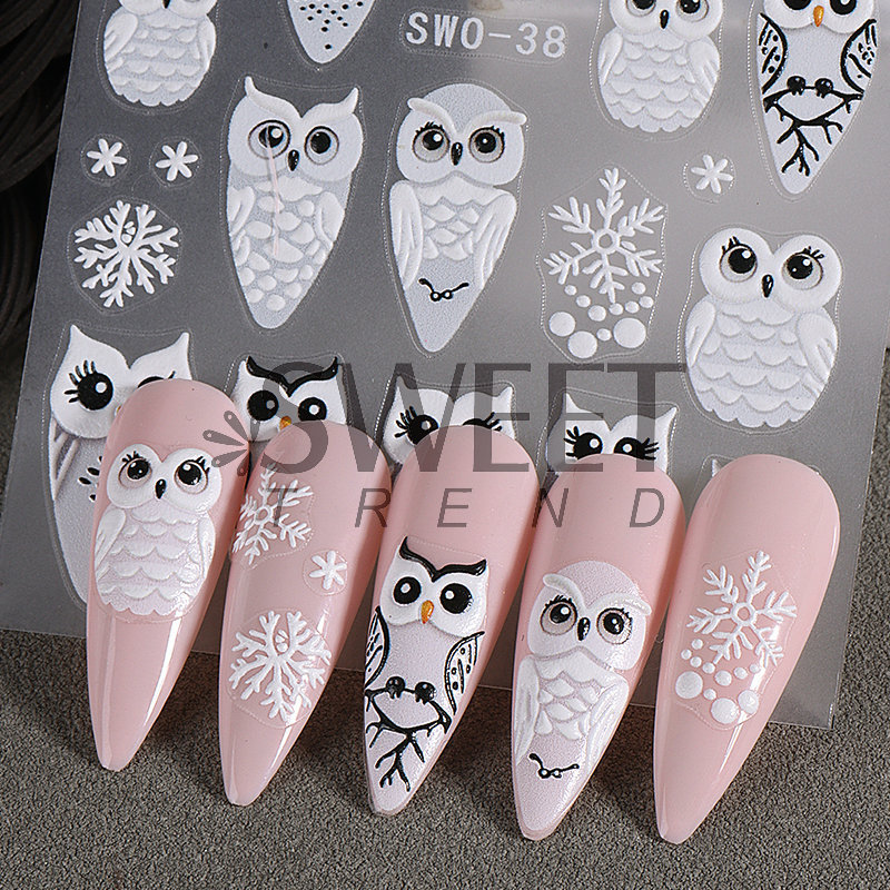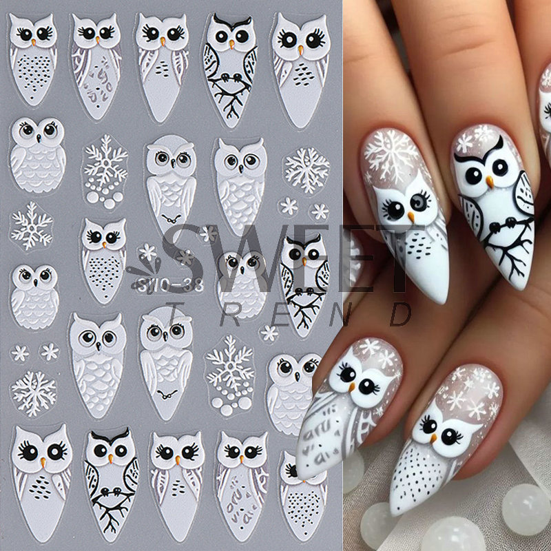 국경 새로운 크리스마스 네일 아트 스티커 귀여운 만화 올빼미 겨울 눈송이 간단한 라인 네일 데칼