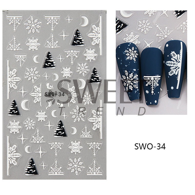 국경 새로운 크리스마스 네일 아트 스티커 귀여운 만화 올빼미 겨울 눈송이 간단한 라인 네일 데칼스토어 가기