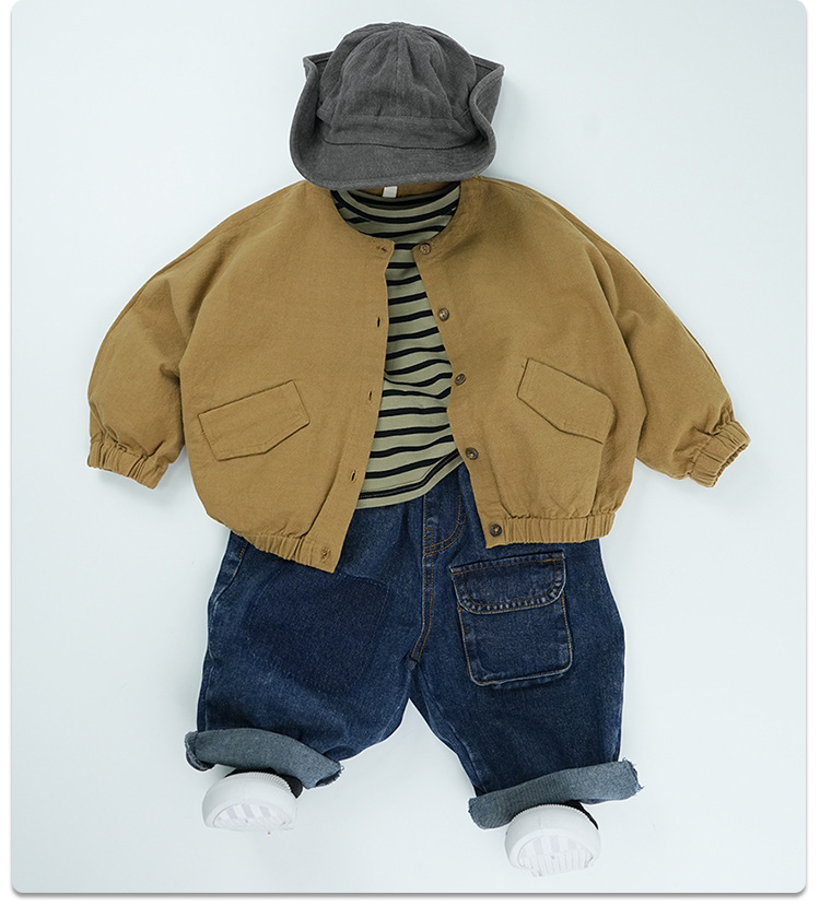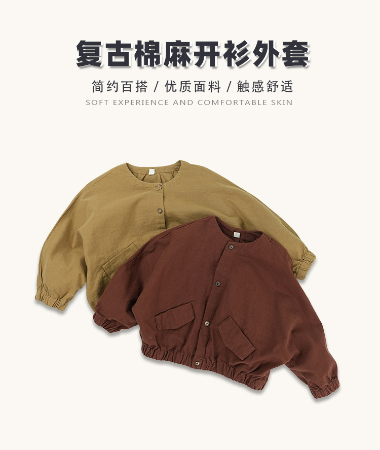 남학생과 여학생을위한 한국의 새로운 어린이 면화 및 리넨 배팅 슬리브 재킷 유니섹스 솔리드 컬러 라운드 넥 카디건 재킷 탑 봄과 가을스토어 가기