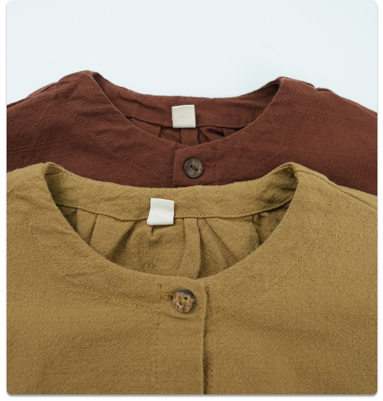 남학생과 여학생을위한 한국의 새로운 어린이 면화 및 리넨 배팅 슬리브 재킷 유니섹스 솔리드 컬러 라운드 넥 카디건 재킷 탑 봄과 가을