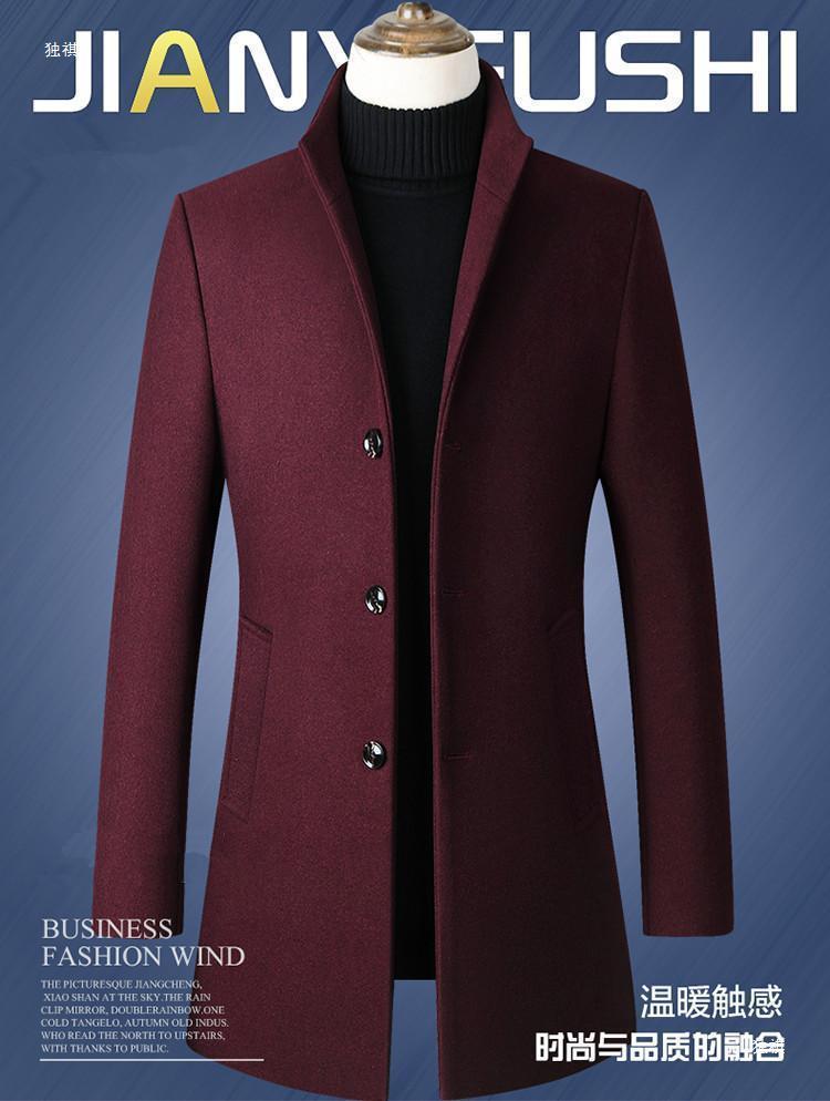 2023 가을 겨울 남자 모직 코트 중간 길이의 영국식 코트 한국식 슬림핏 칼라 모직 코트 트렌디스토어 가기