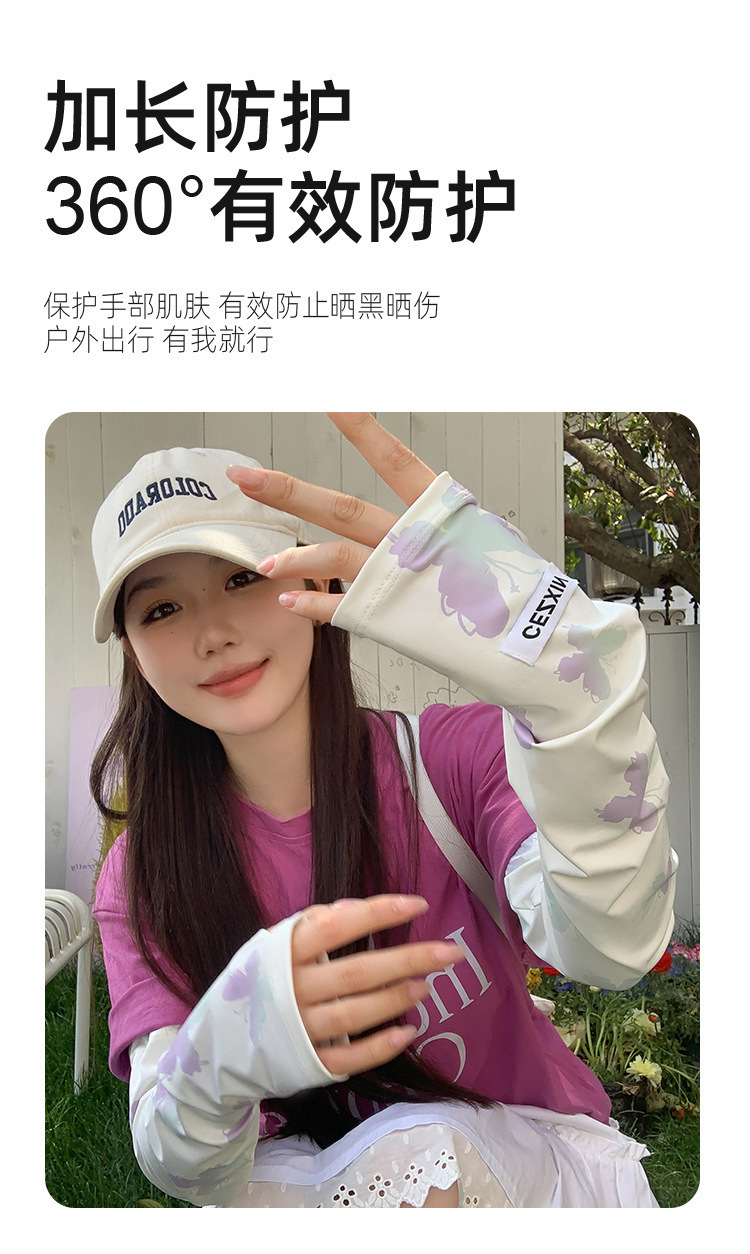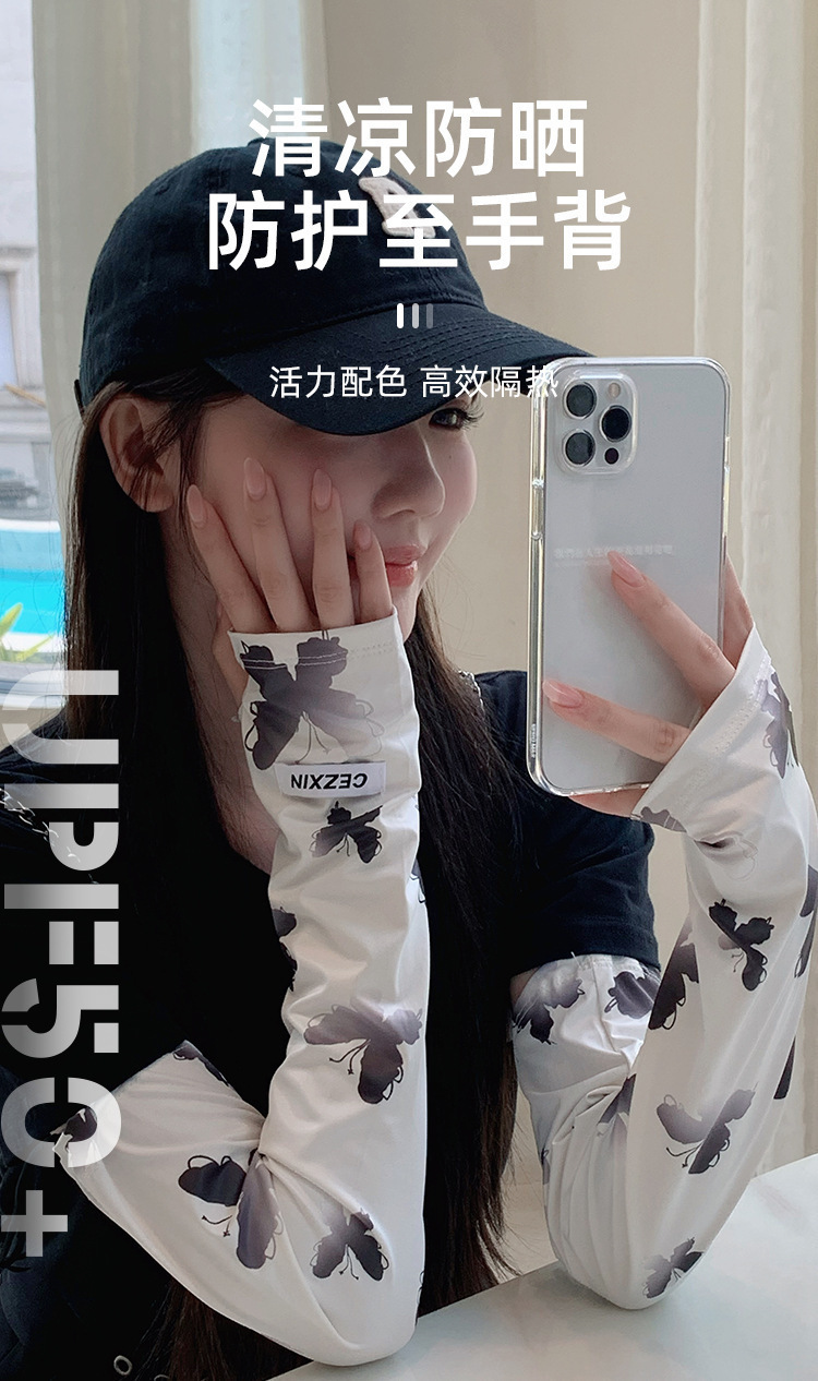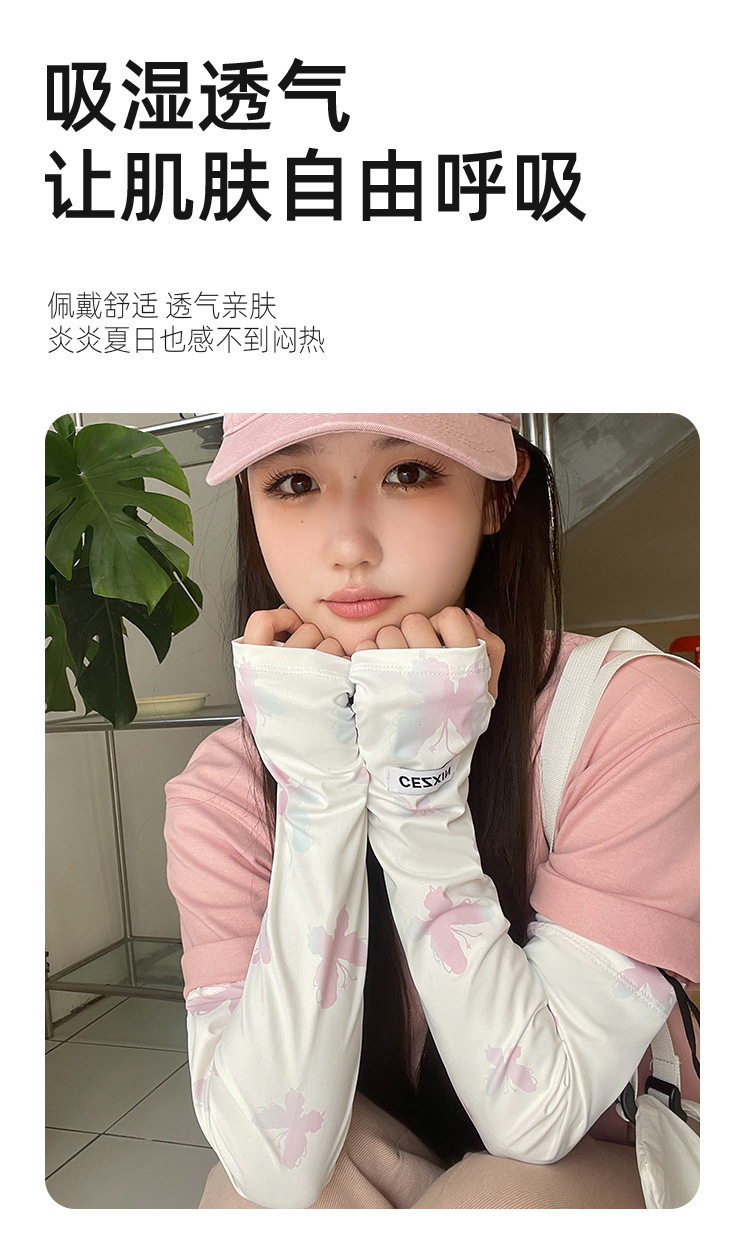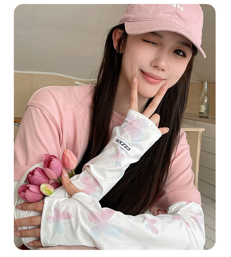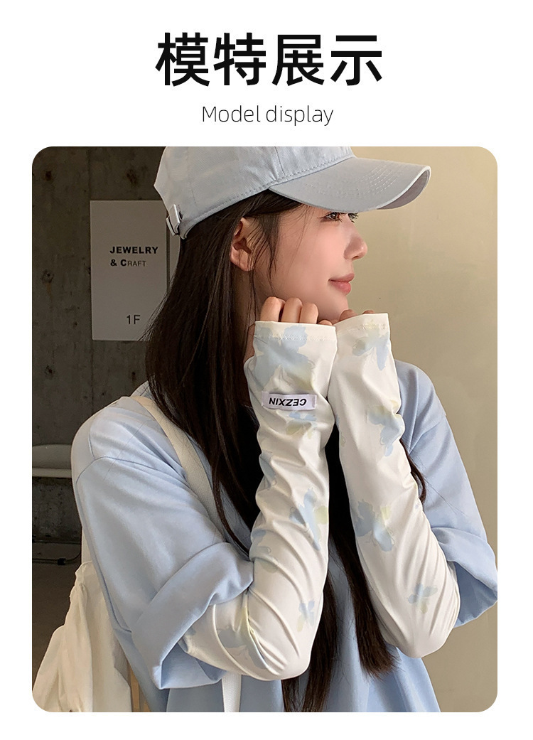 그라디언트 나비 얼음 실크 태양 보호 소매 귀여운 여성의 UV 보호 장갑 여름 승마 운전 팔 보호 얼음 소매스토어 가기