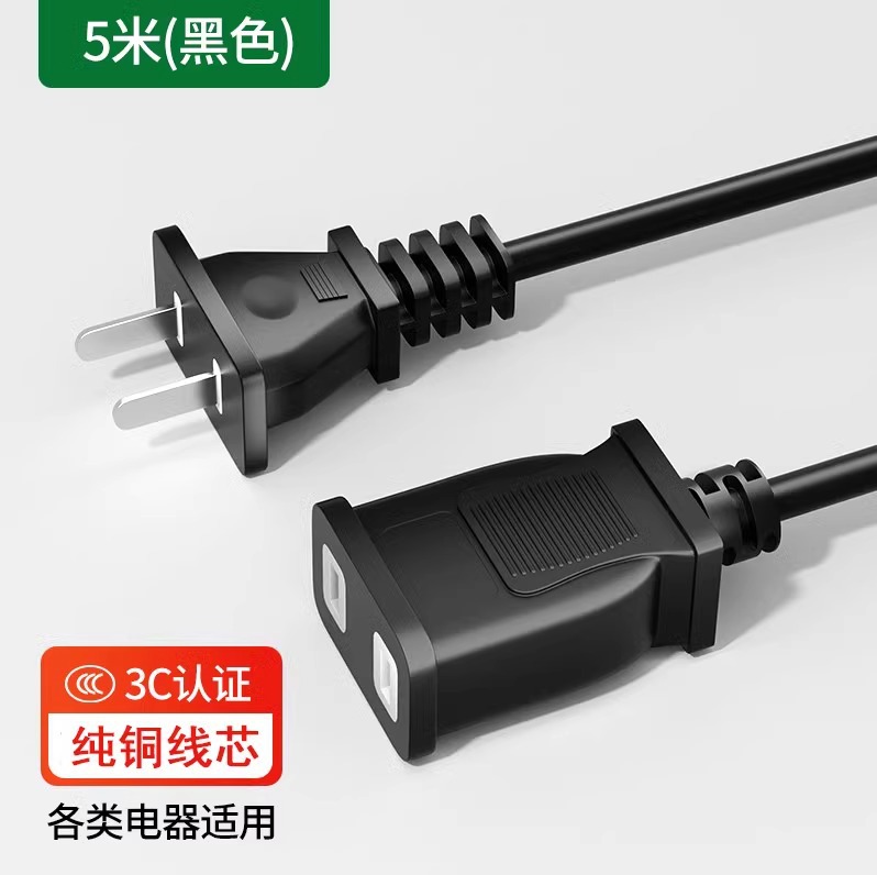 전원 코드 연장 코드 2 코어 와이어 2 핀 2 홀 2 플러그 TV 전기 팬 전기 자동차 연장 플러그 코드