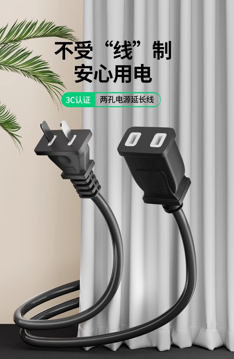 전원 코드 연장 코드 2 코어 와이어 2 핀 2 홀 2 플러그 TV 전기 팬 전기 자동차 연장 플러그 코드스토어 가기