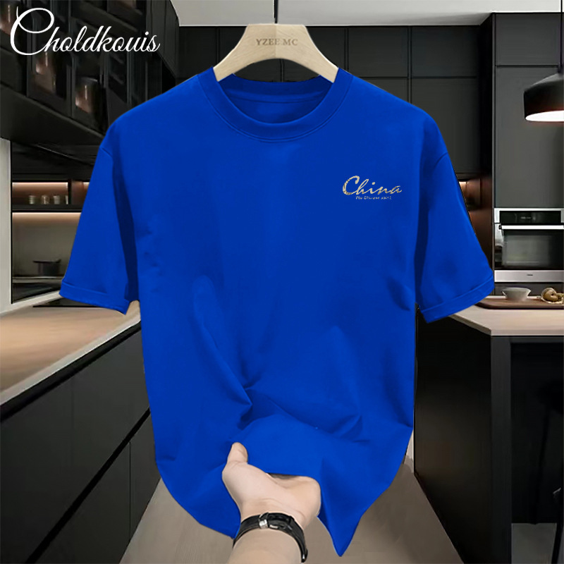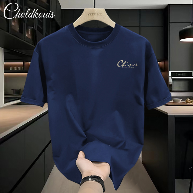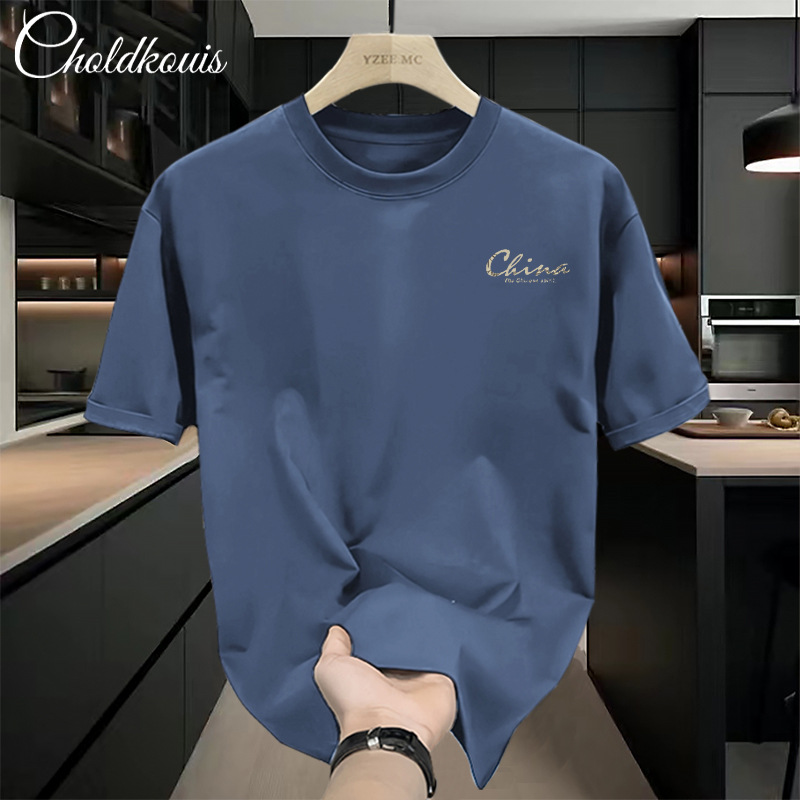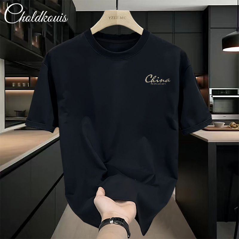 헤비 코튼 루즈 티셔츠 남성용 프린트 라운드 넥 패셔너블 브랜드 인스타그램 스타일 반팔 티셔츠 남성용 한국식 유행 반소매 티셔츠