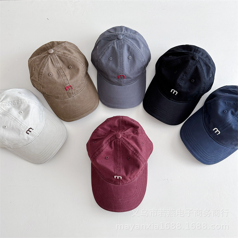 Ins 어린이 모자 봄과 가을 새 편지 작은 M 수 놓은 야외 유행 착용 소년 소녀 햇빛 야구 모자스토어 가기