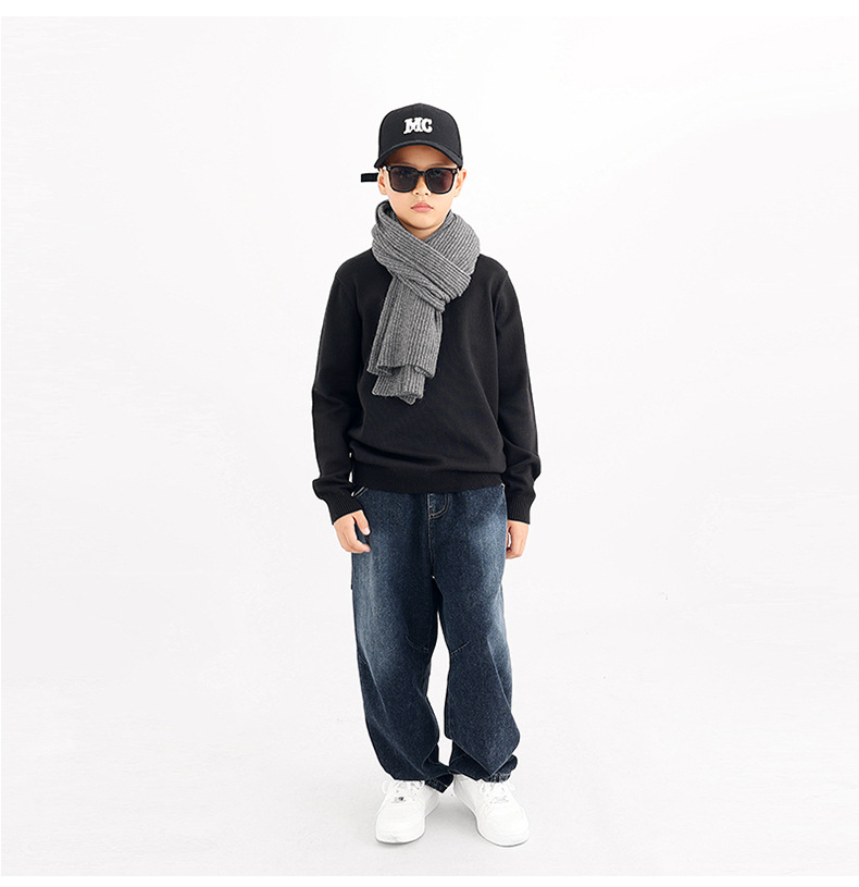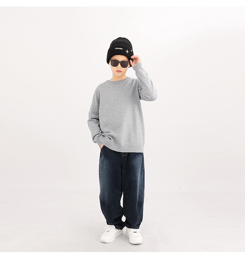 가을, 겨울 한국 스타일 새 소년 긴팔 스웨터 코어 스펀 원사 솔리드 컬러 따뜻한 탑 소녀 스웨터베이스 셔츠