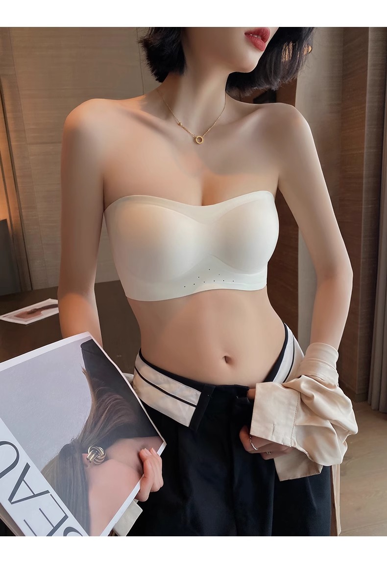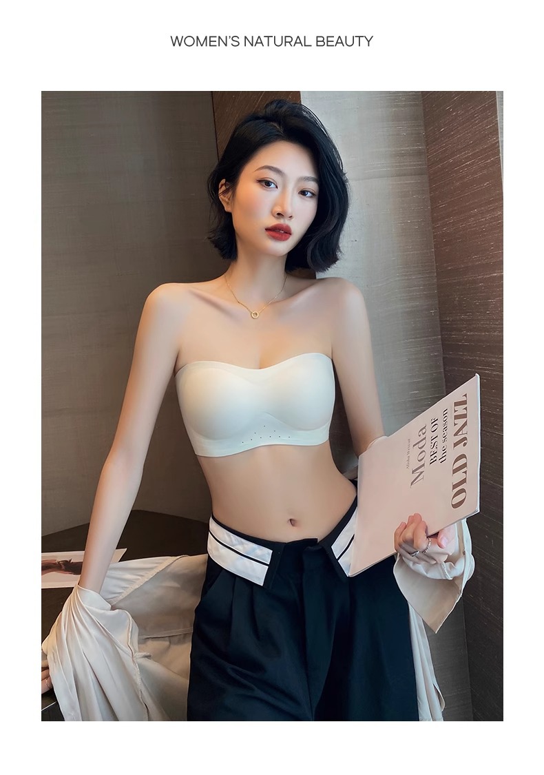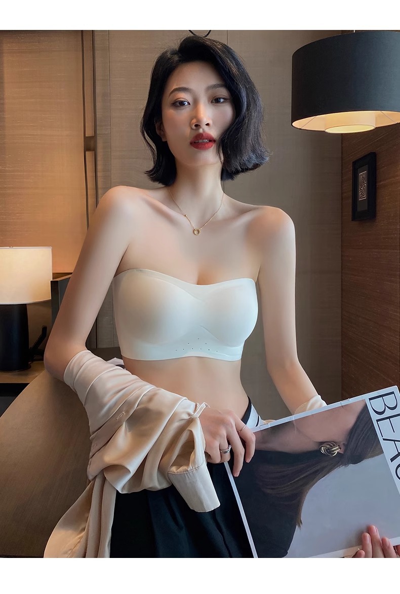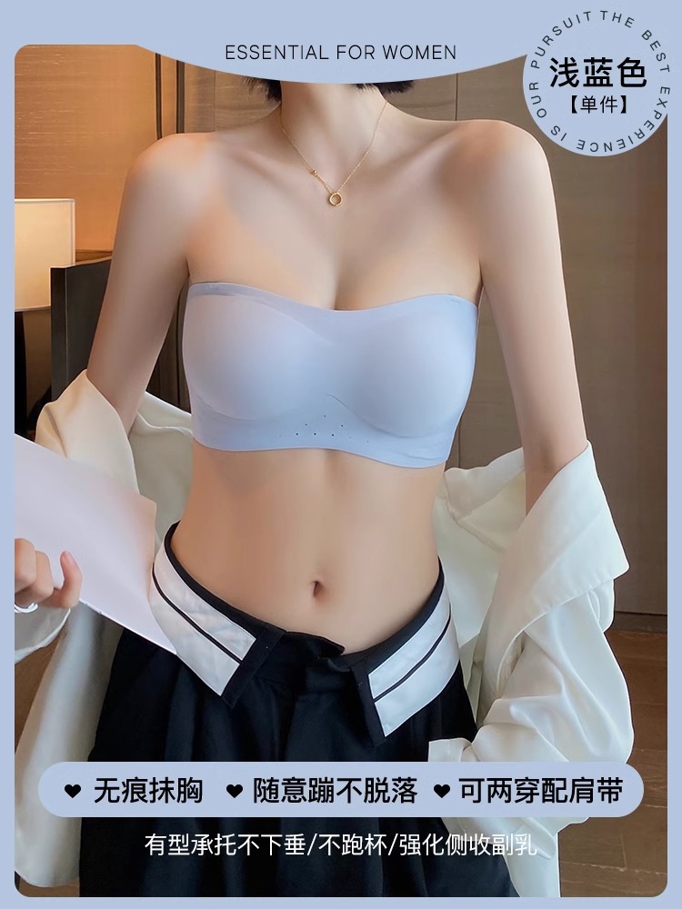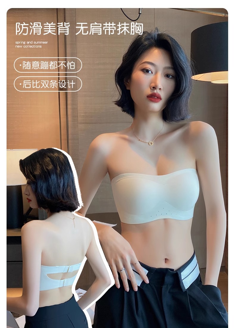 스트랩리스 속옷 여성용 여름 얇은 작은 가슴 푸시 업 미끄럼 보이지 않는 튜브 랩 가슴 추적없는 아름다운 등 브래지어 반지 없음스토어 가기