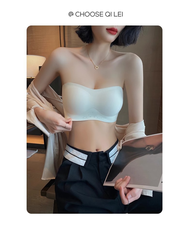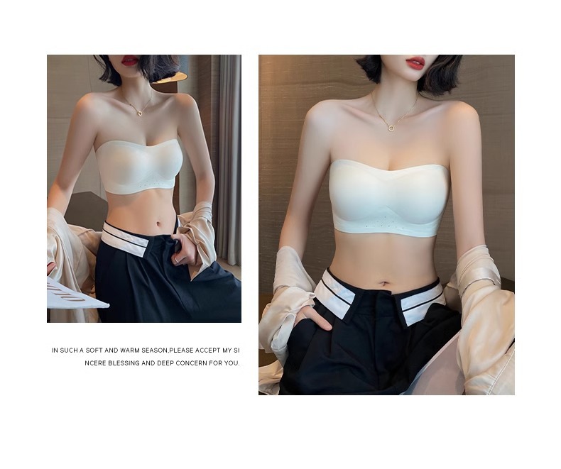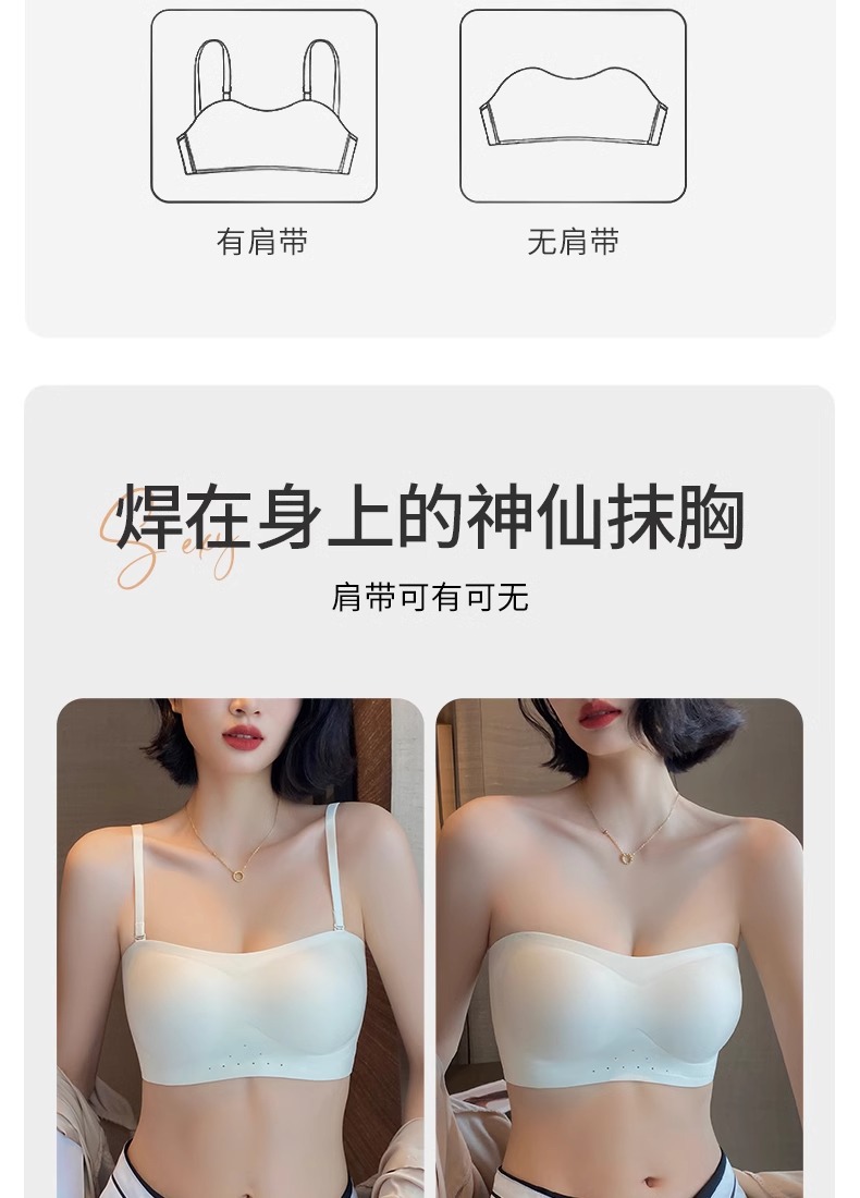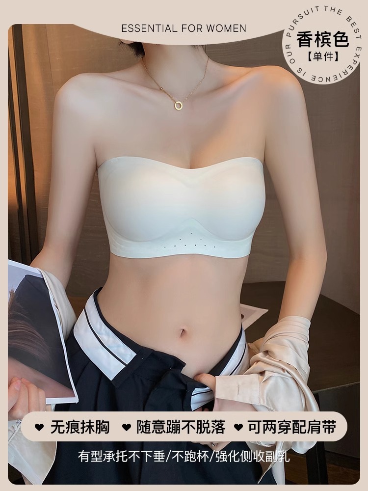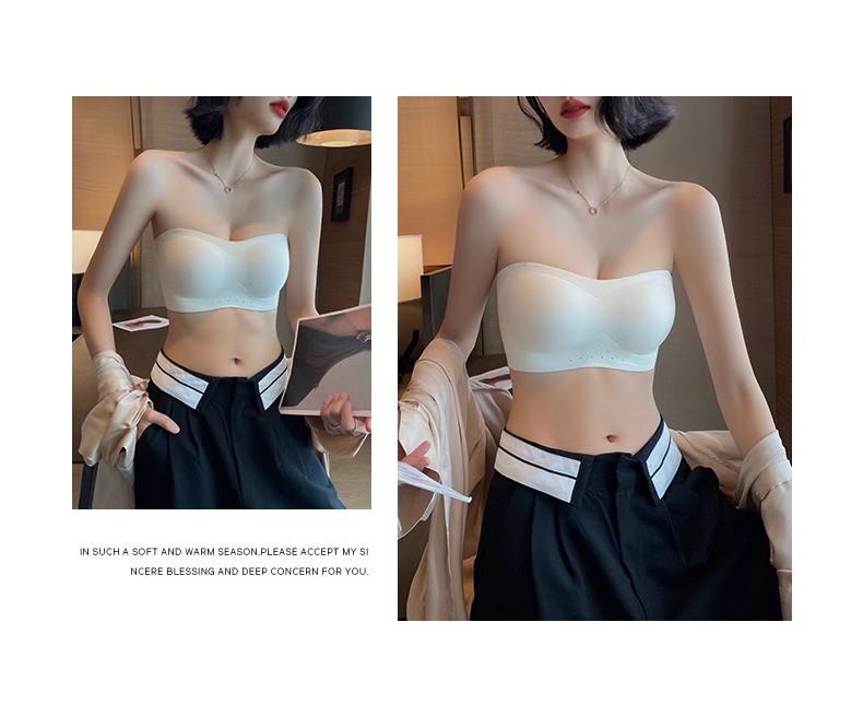 스트랩리스 속옷 여성용 여름 얇은 작은 가슴 푸시 업 미끄럼 보이지 않는 튜브 랩 가슴 추적없는 아름다운 등 브래지어 반지 없음스토어 가기