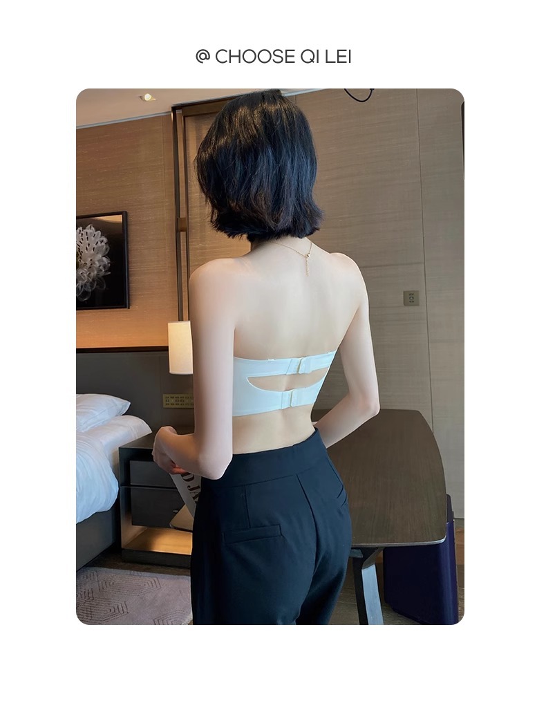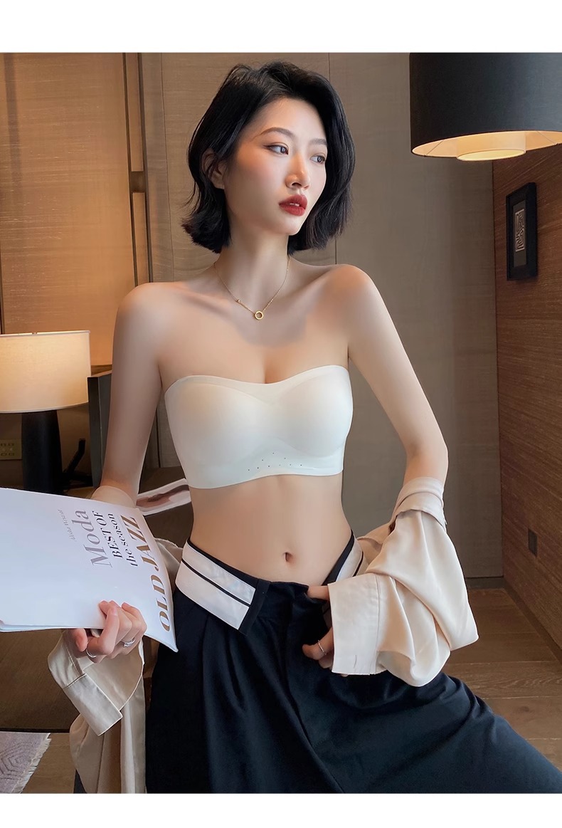 스트랩리스 속옷 여성용 여름 얇은 작은 가슴 푸시 업 미끄럼 보이지 않는 튜브 랩 가슴 추적없는 아름다운 등 브래지어 반지 없음