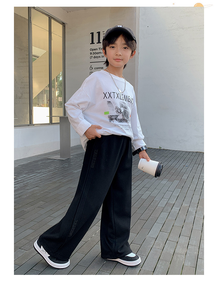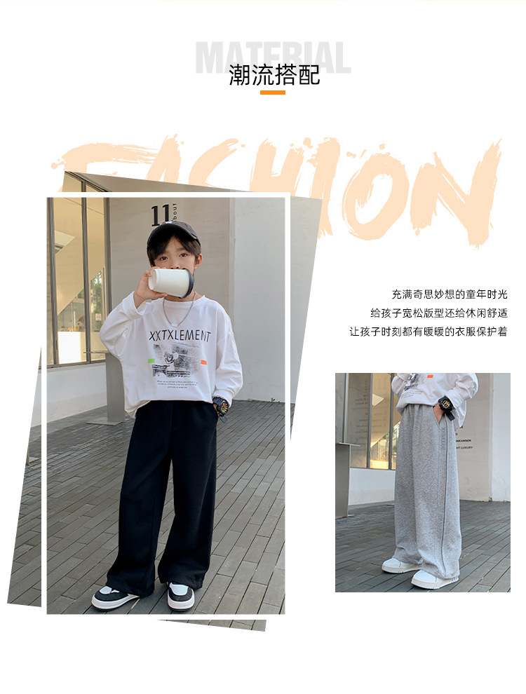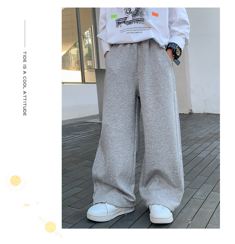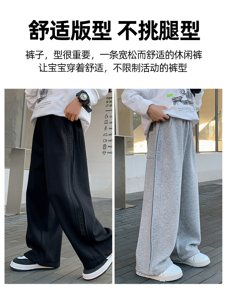 가을 및 겨울 어린이 소년 바지 2025 새로운 스타일의 중대형 어린이 겨울 스트레이트 바지에 소년 기모 스포츠 바지
