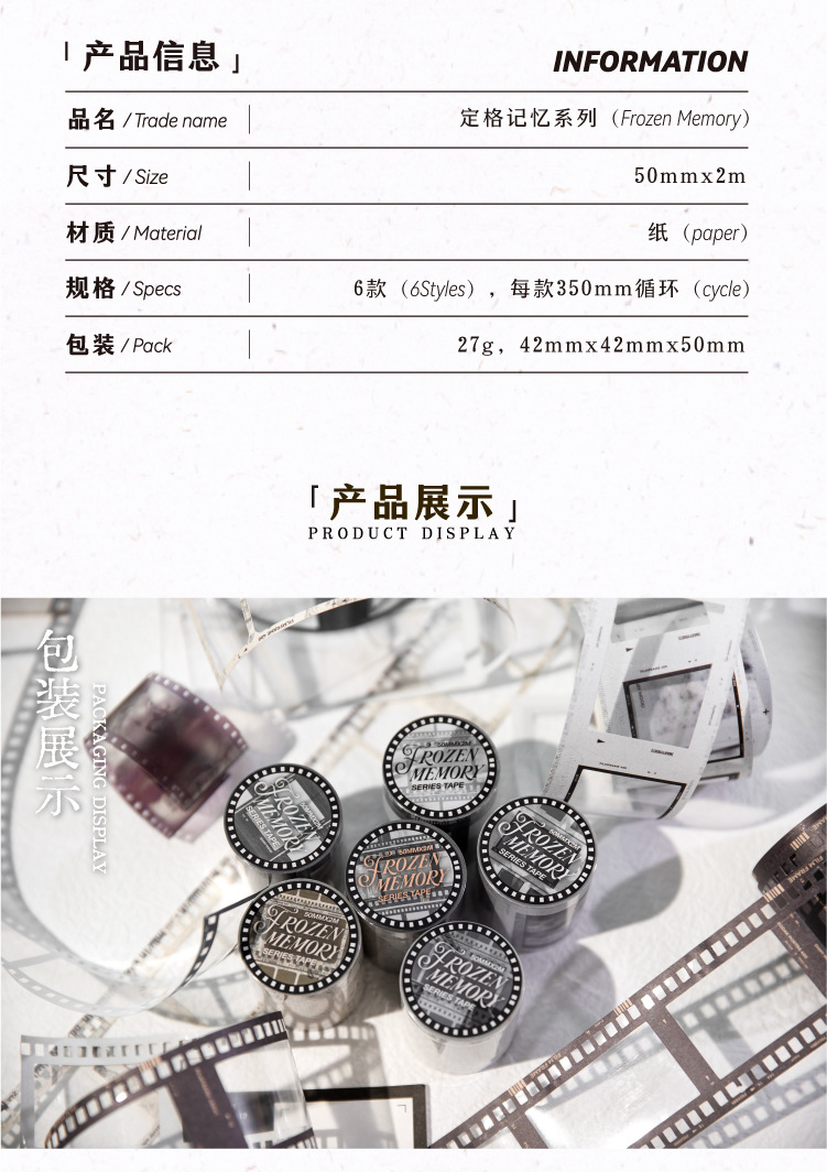 Yan Ji Bai 가죽 테이프 동결 프레임 메모리 시리즈 6 선택된 필름 소재 DIY 장식 스티커스토어 가기