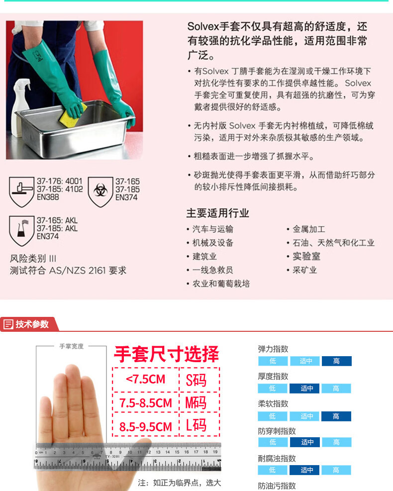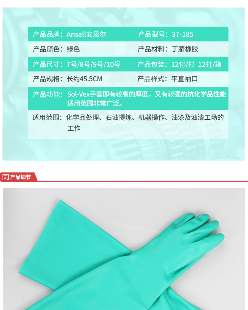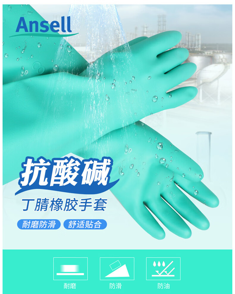 Ansell/Ansell 37-185 니트릴 긴 소매 장갑 내유성 및 내마모성 화학 물질 45CM 화학 내성 장갑스토어 가기