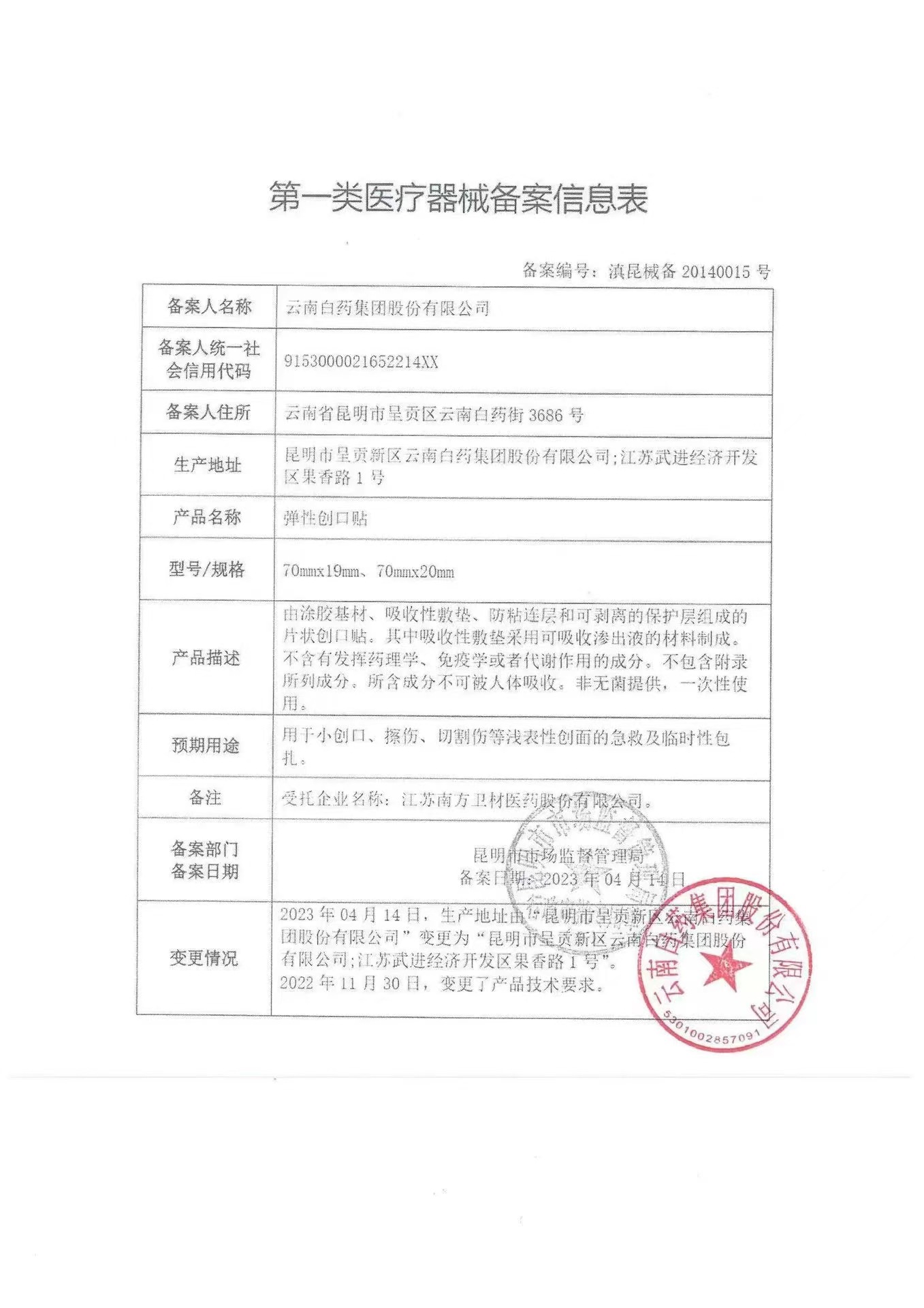 윈난 바이 야오 탄성 밴드 에이드 슈퍼 탄성 밴드 에이드 통기성 밴드 에이드 경량 방수 반창고