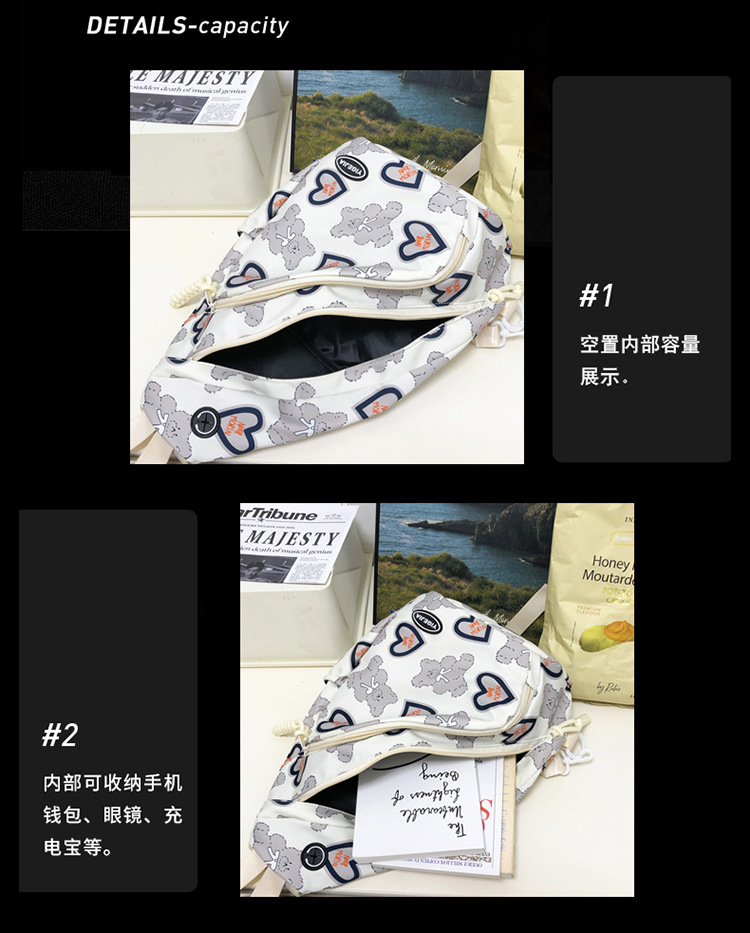 새로운 대용량 학생 배낭 패션 낙서 인쇄 된 낙서 남녀 빅 가슴 가방 캐주얼 올 매치 크로스 바디 백 여성 한국 스타일스토어 가기