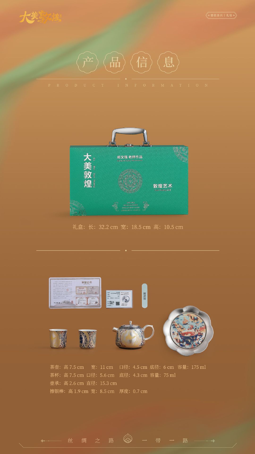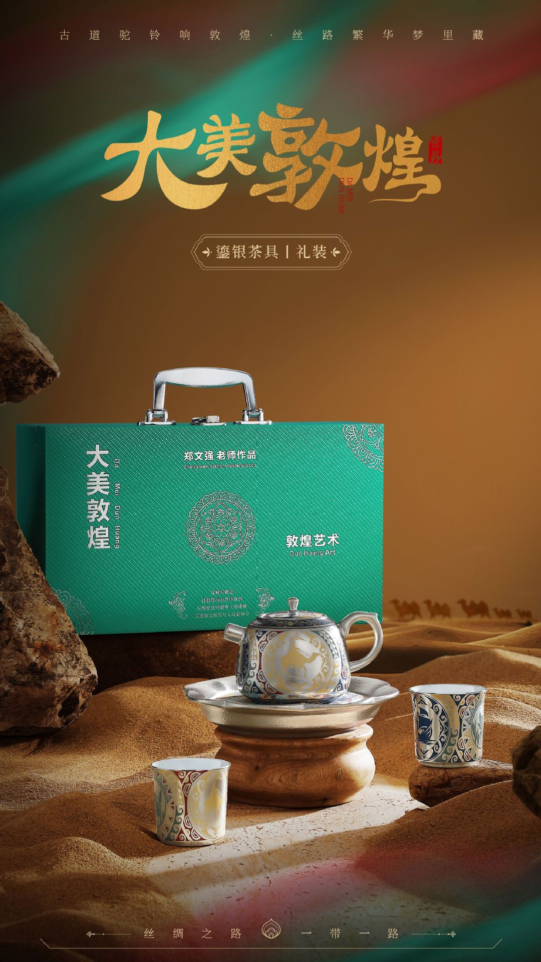 郑文强敦煌文创鎏银茶具套装银壶银杯功夫茶具泡茶壶茶杯商务礼品