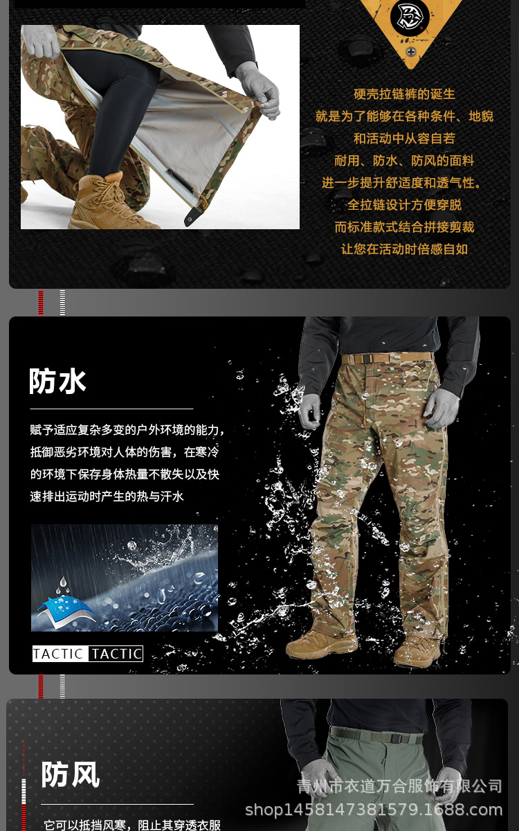 Yinren 하드 쉘 1 방수 어썰트 바지 남성용 야외 사이드 지퍼 위장 등산 긴 바지 국경 간 맞춤형 제품