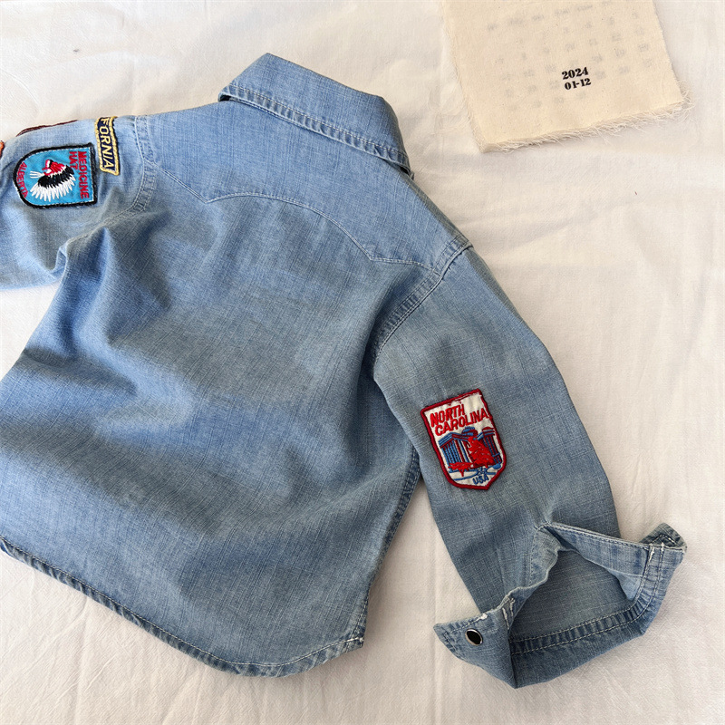 [재고] 일본 중동 고대 배지 어린이 데님 셔츠