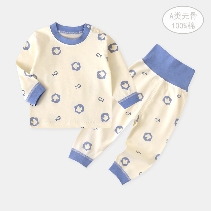 아기 잠옷 순수한면 봄과 가을 높은 허리 배꼽 보호 신생아 분할 세트 아기 가을 옷과 바지 기본 옷스토어 가기