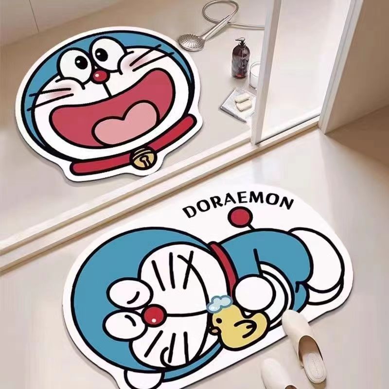 재고 팡후 도라에몽 디아톰 머드 스타일 플로어 매트 욕실 바닥 매트 입구 문 매트 2 피스 세트스토어 가기