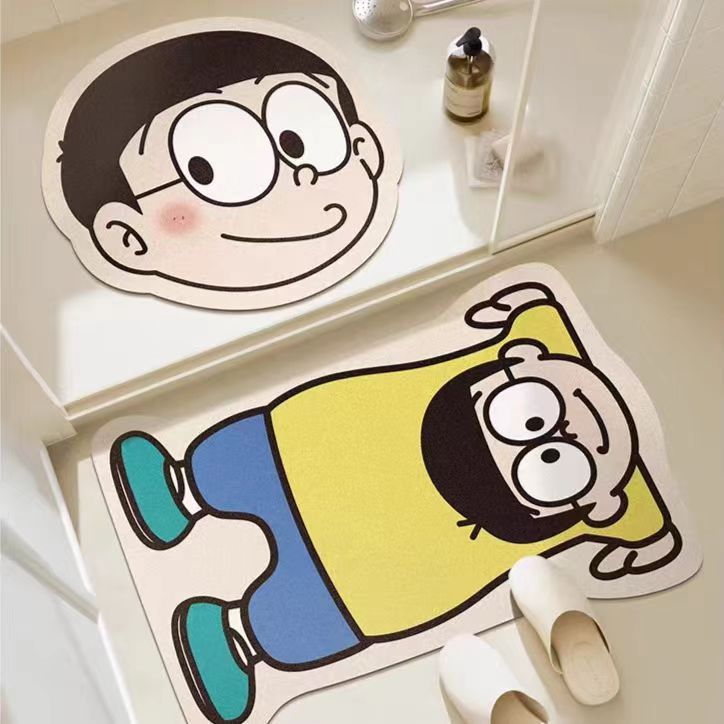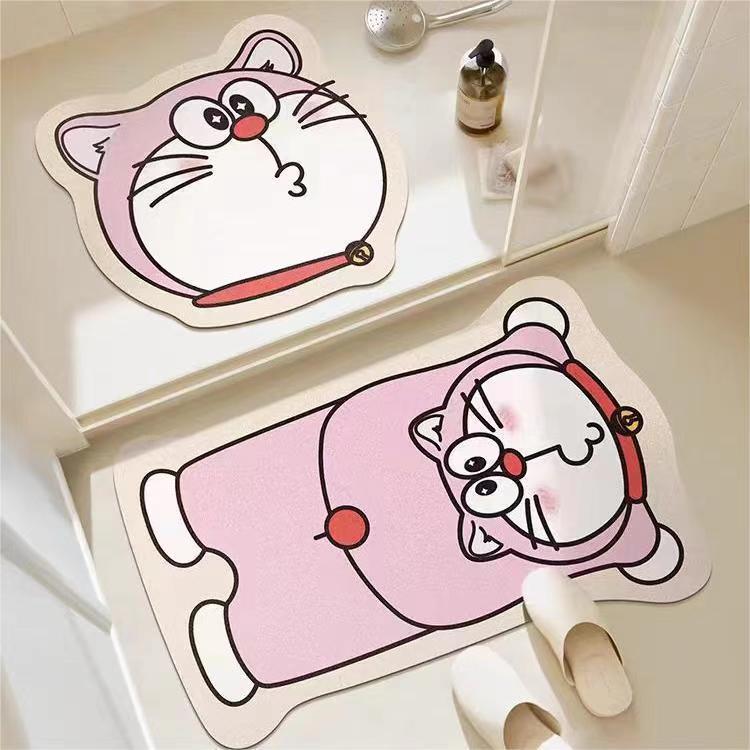 재고 팡후 도라에몽 디아톰 머드 스타일 플로어 매트 욕실 바닥 매트 입구 문 매트 2 피스 세트