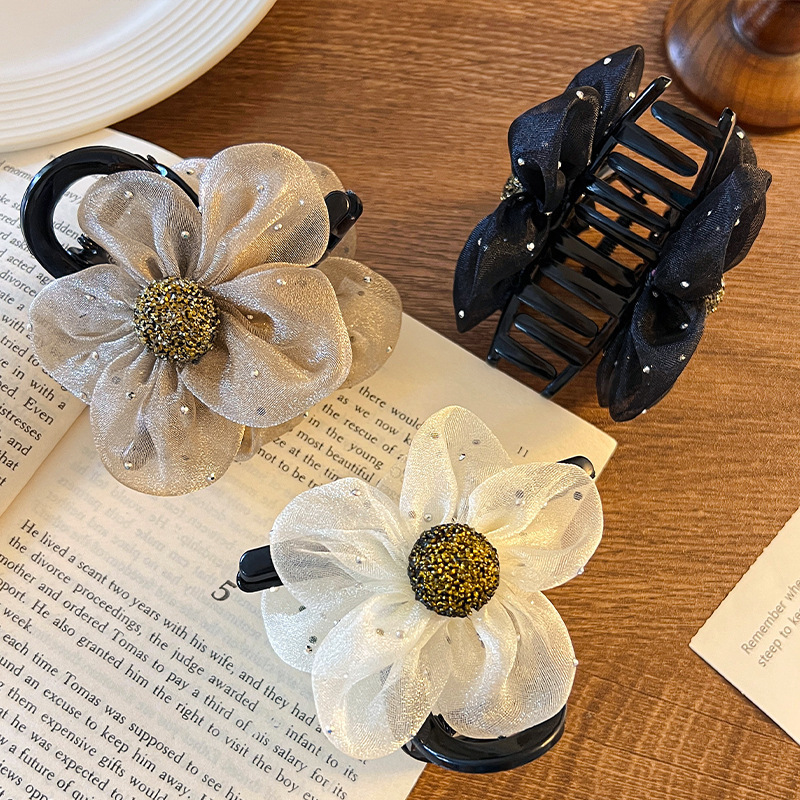 메쉬 라인스톤 썬 플라워 그랩 클립 고급 느낌 우아한 헤어핀 헤드웨어 여성 머리 상어 클립 헤어 액세서리