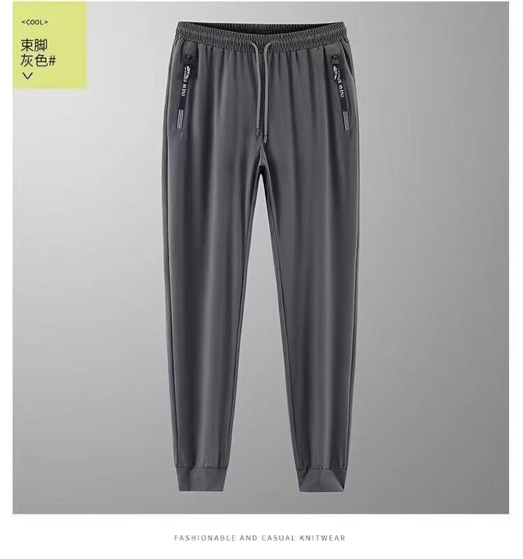아이스 실크 바지 남자 2024 여름 새로운 얇은 플러스 사이즈 번들 발 빠른 건조 스포츠 바지 남성용 통기성 캐주얼 바지스토어 가기