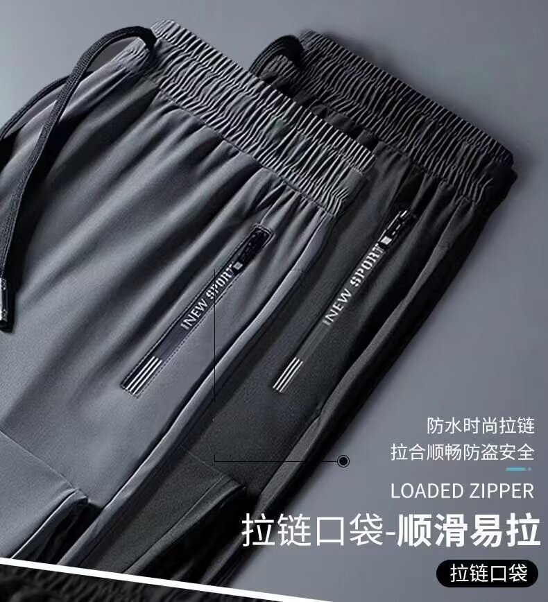 아이스 실크 바지 남자 2024 여름 새로운 얇은 플러스 사이즈 번들 발 빠른 건조 스포츠 바지 남성용 통기성 캐주얼 바지