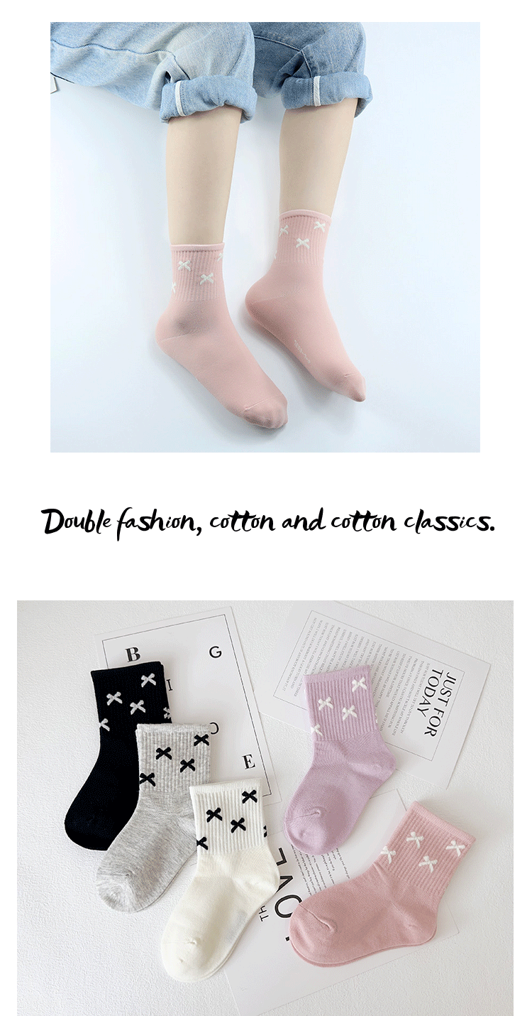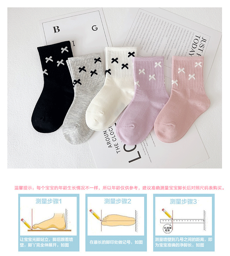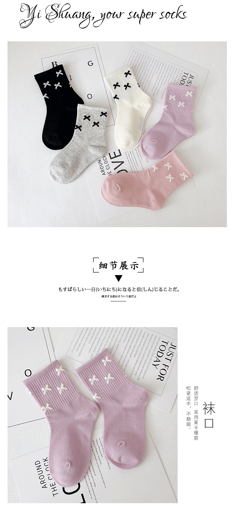 Yi Pair 어린이 양말 가을과 겨울 새로운 한국 스타일 활 중간 튜브 양말 Combed Cotton Girls 스포츠 양말
