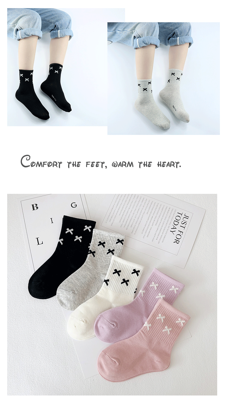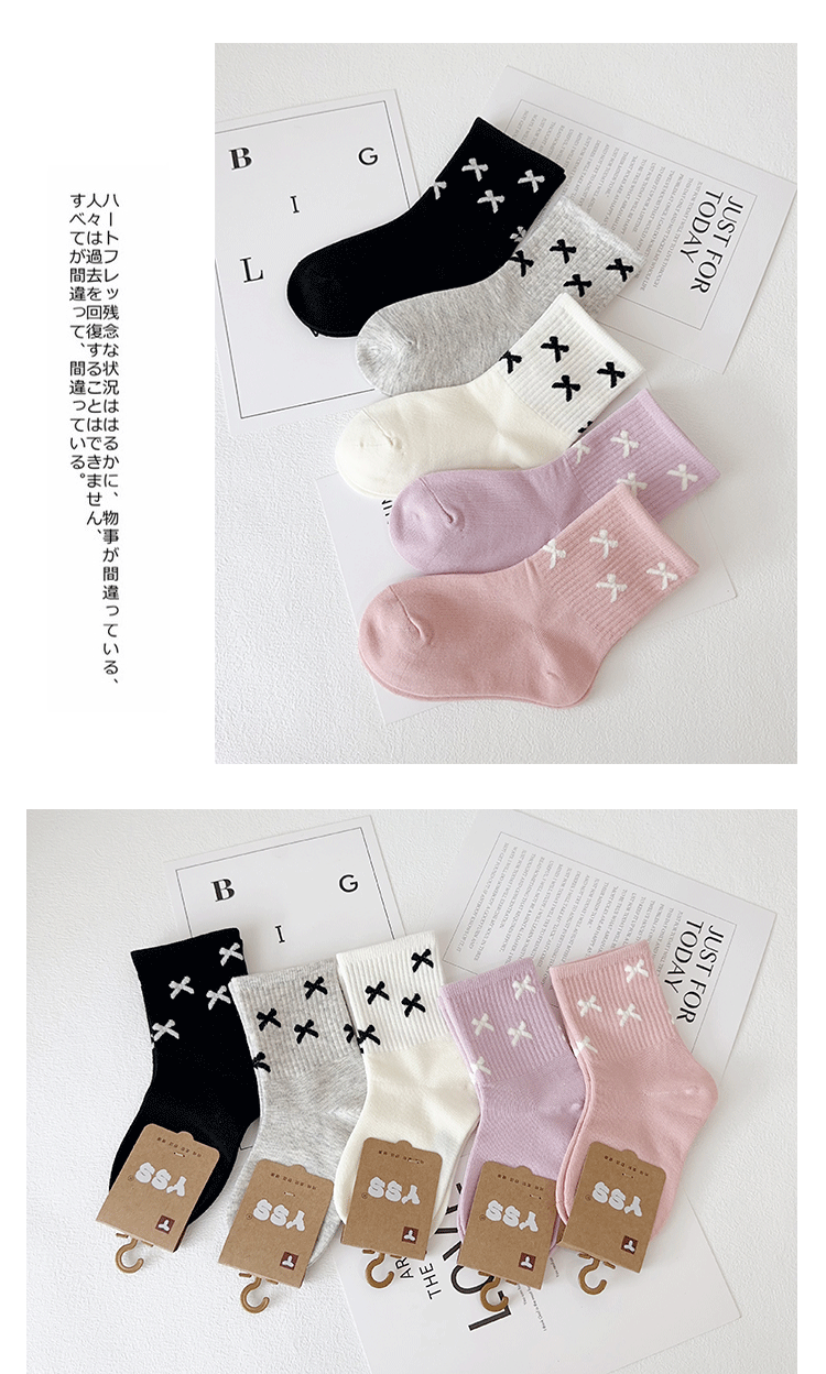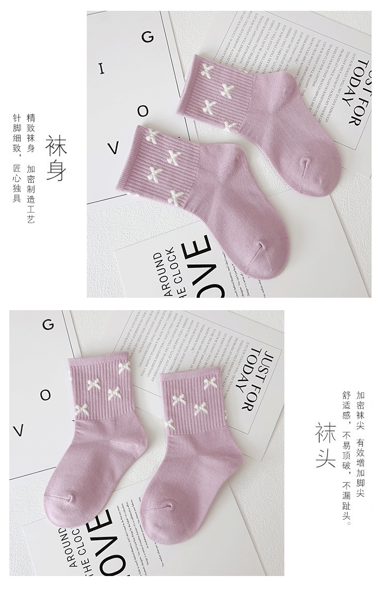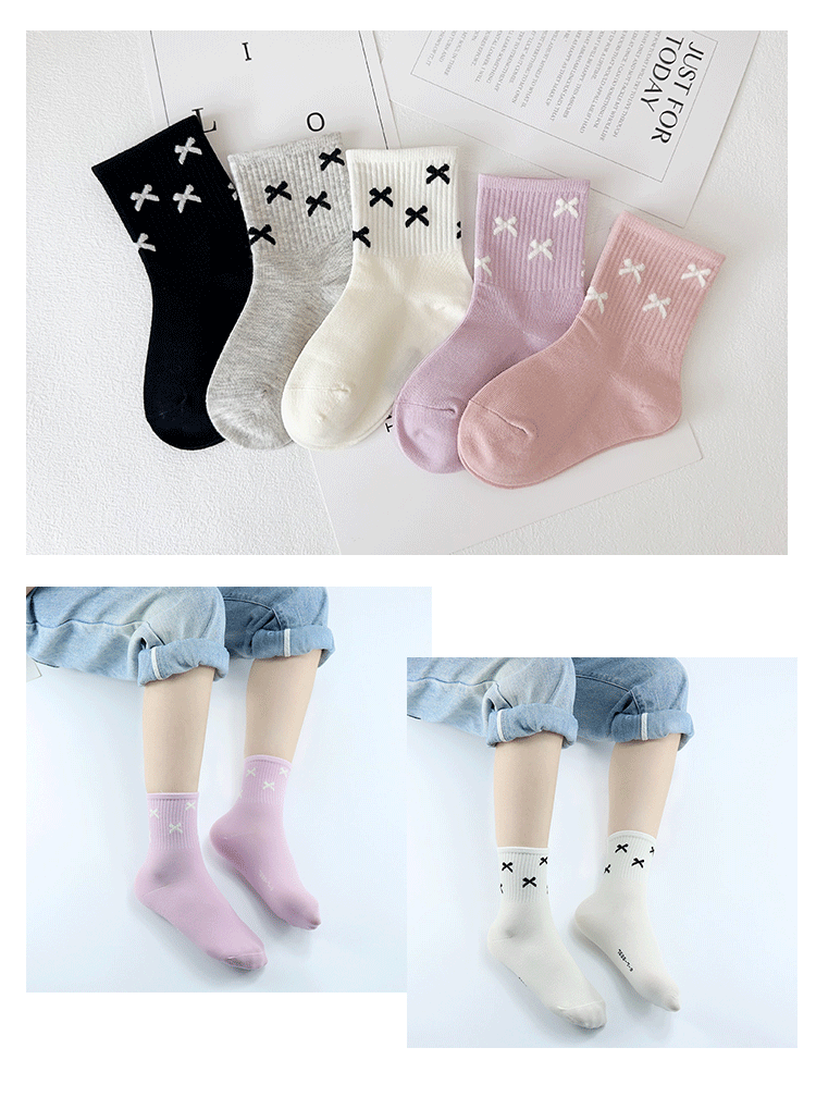 Yi Pair 어린이 양말 가을과 겨울 새로운 한국 스타일 활 중간 튜브 양말 Combed Cotton Girls 스포츠 양말