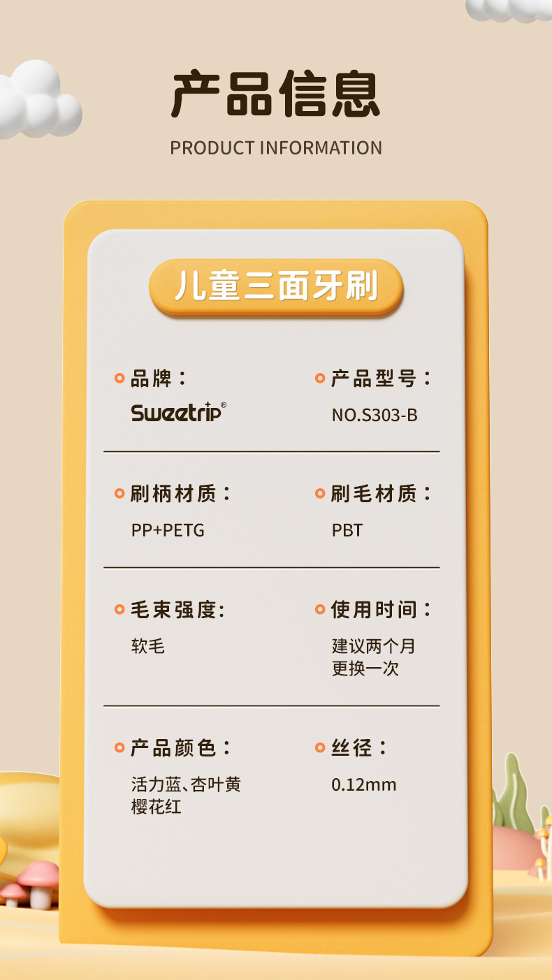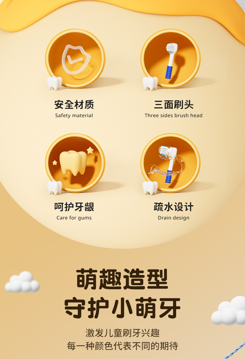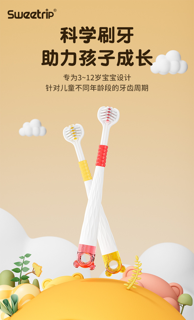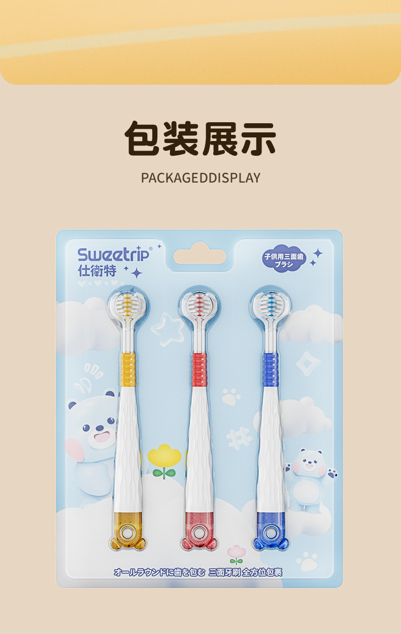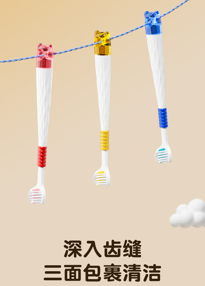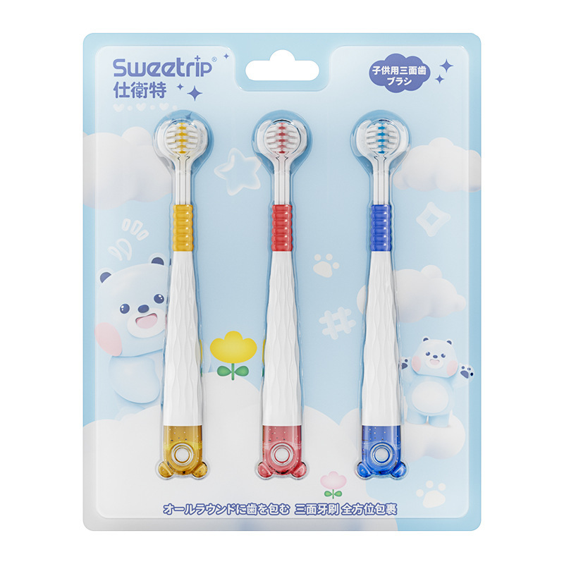 [3 팩] 어린이 시니어 소프트 헤어 3 면 칫솔 3 ~ 12 세 모에 재미 곰 어린이 칫솔 정품 적합