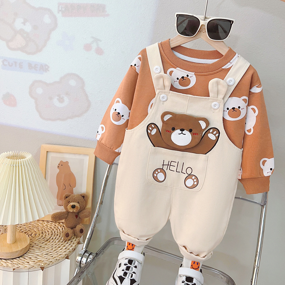 1-3 세 어린이 가을 옷 2024 봄과 가을 새로운 소년과 소녀 전체 인쇄 만화 둥근 목 스웨터 투피스 패션스토어 가기