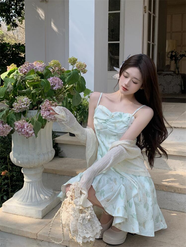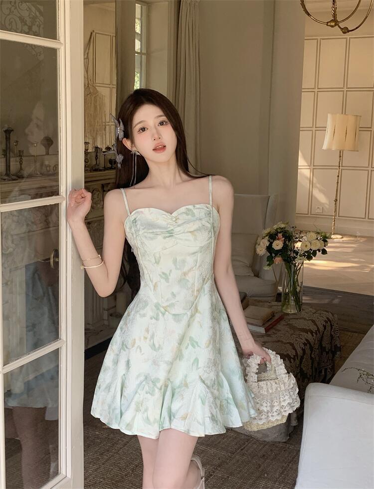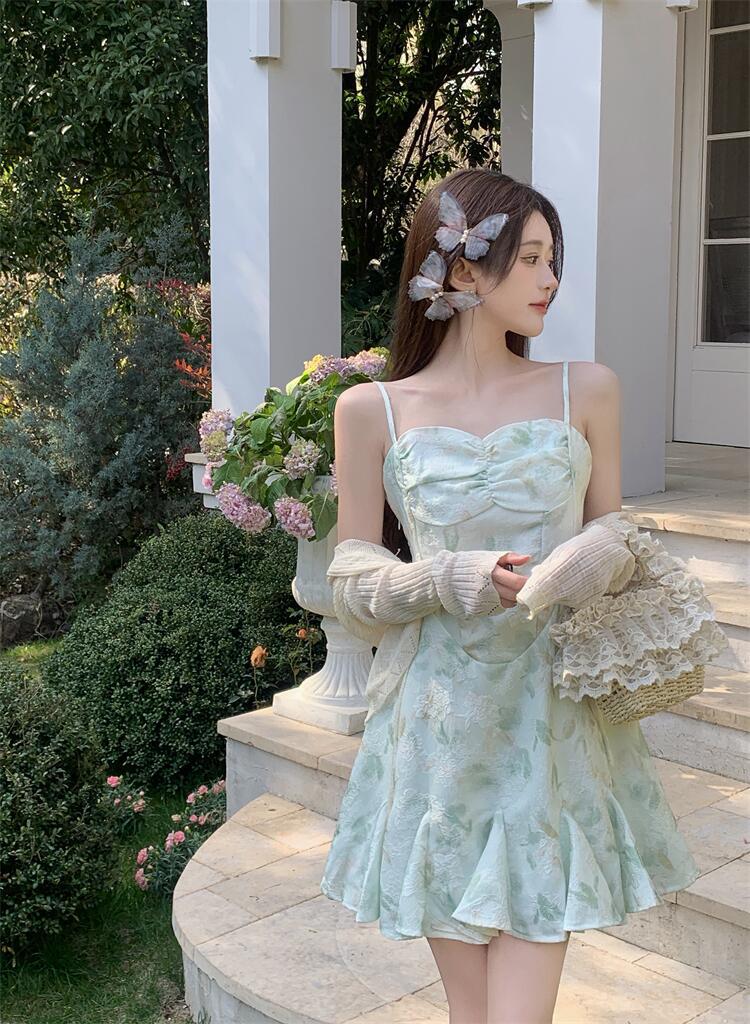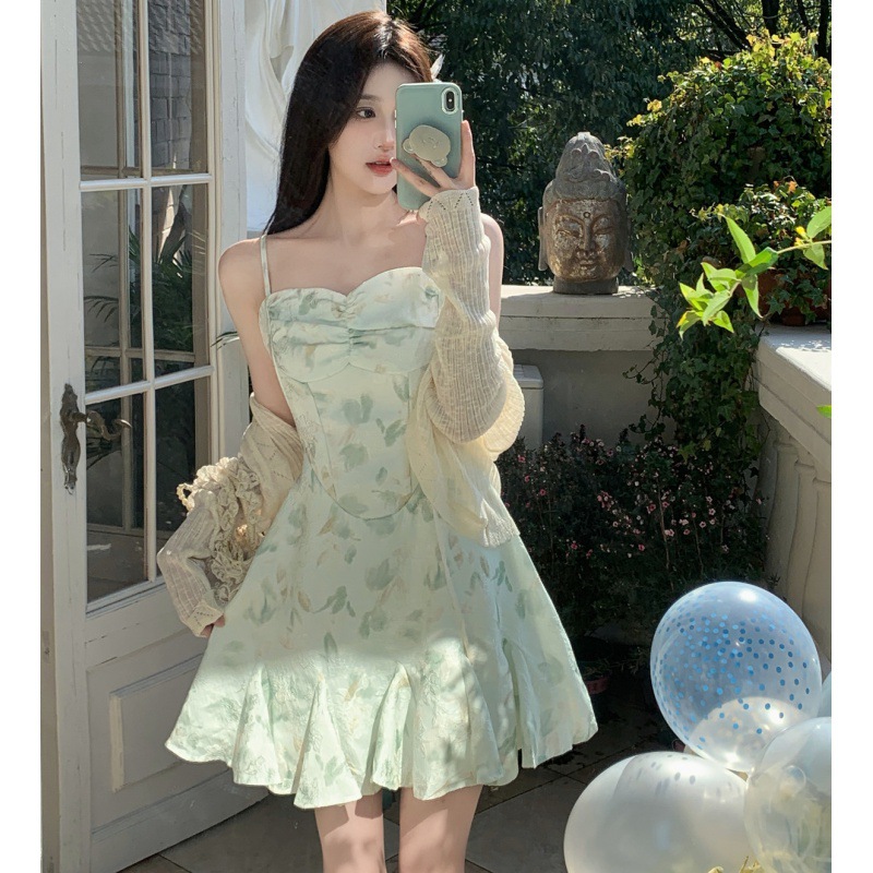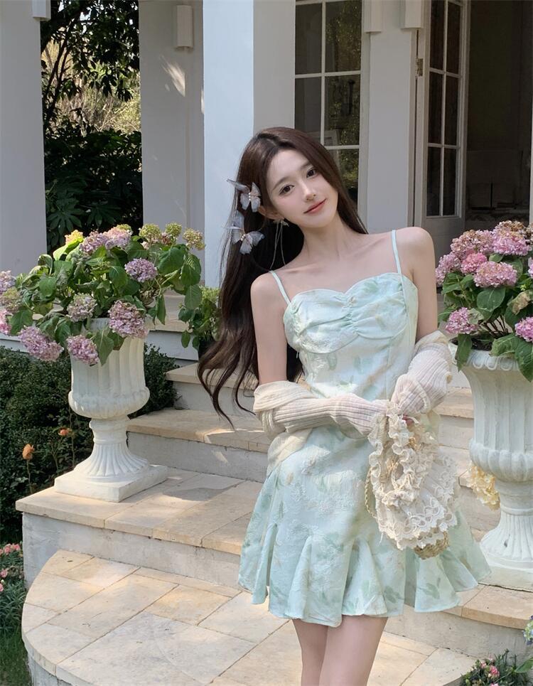 • 녹색 서스펜더 스커트