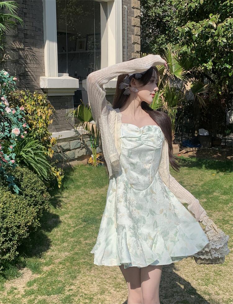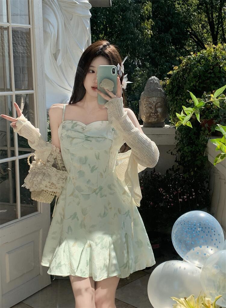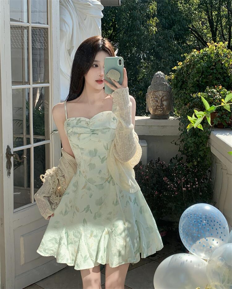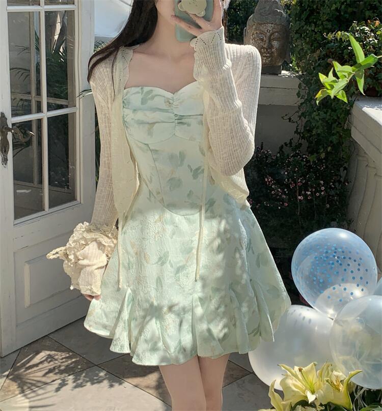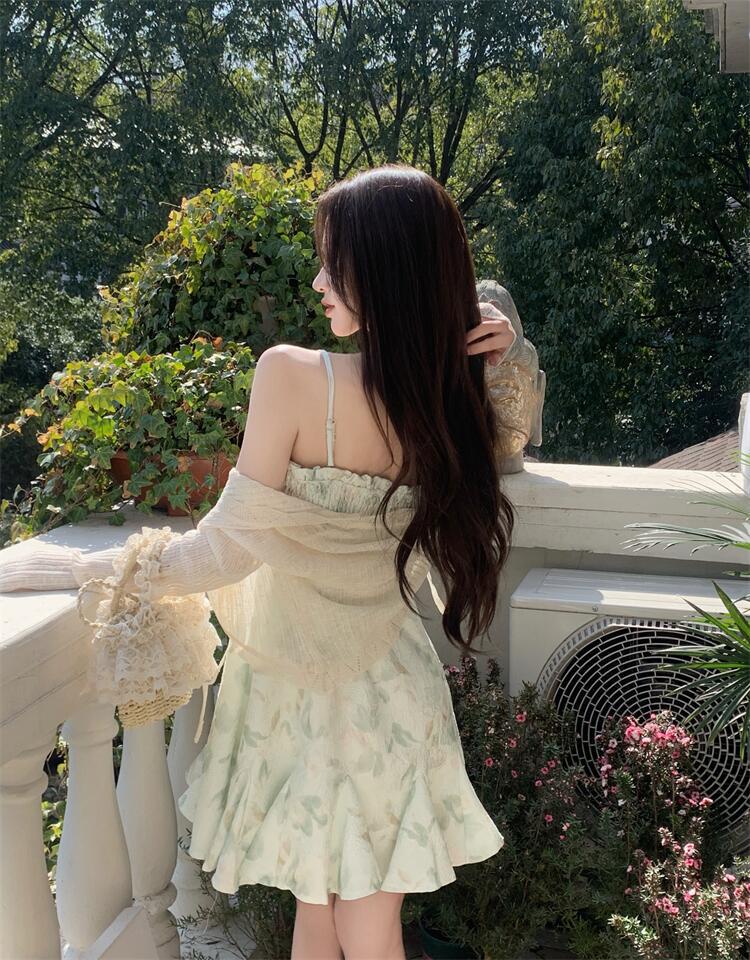 • 녹색 서스펜더 스커트