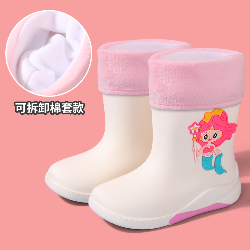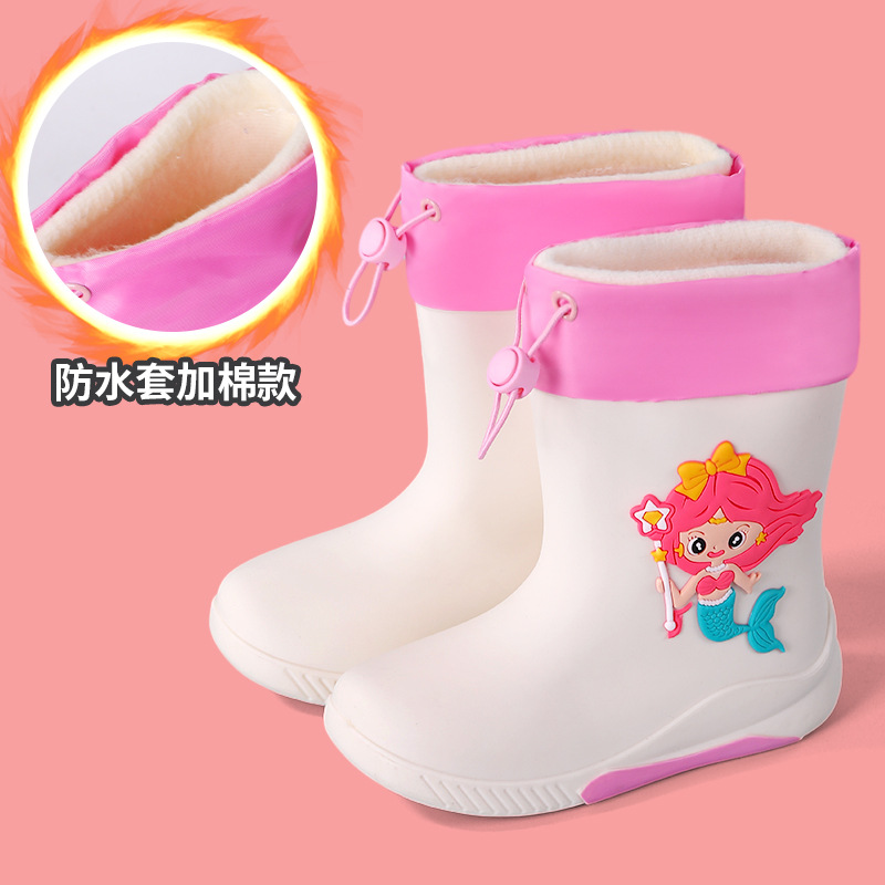새로운 어린이 물 신발 2-15 세 만화 소년 소녀 방수 경량 어린이 비 부츠 중 큰 어린이 기모 물 신발