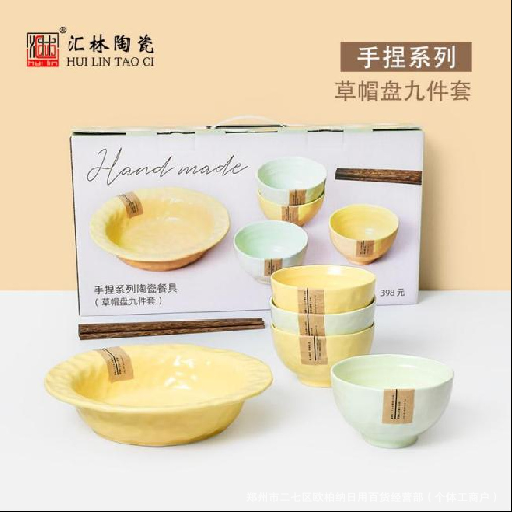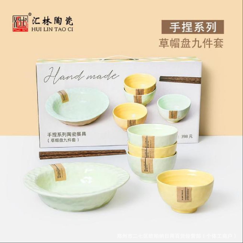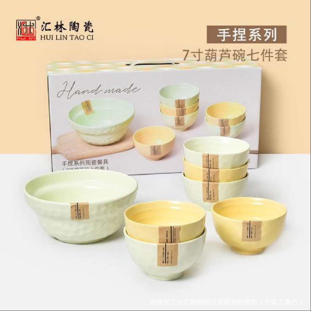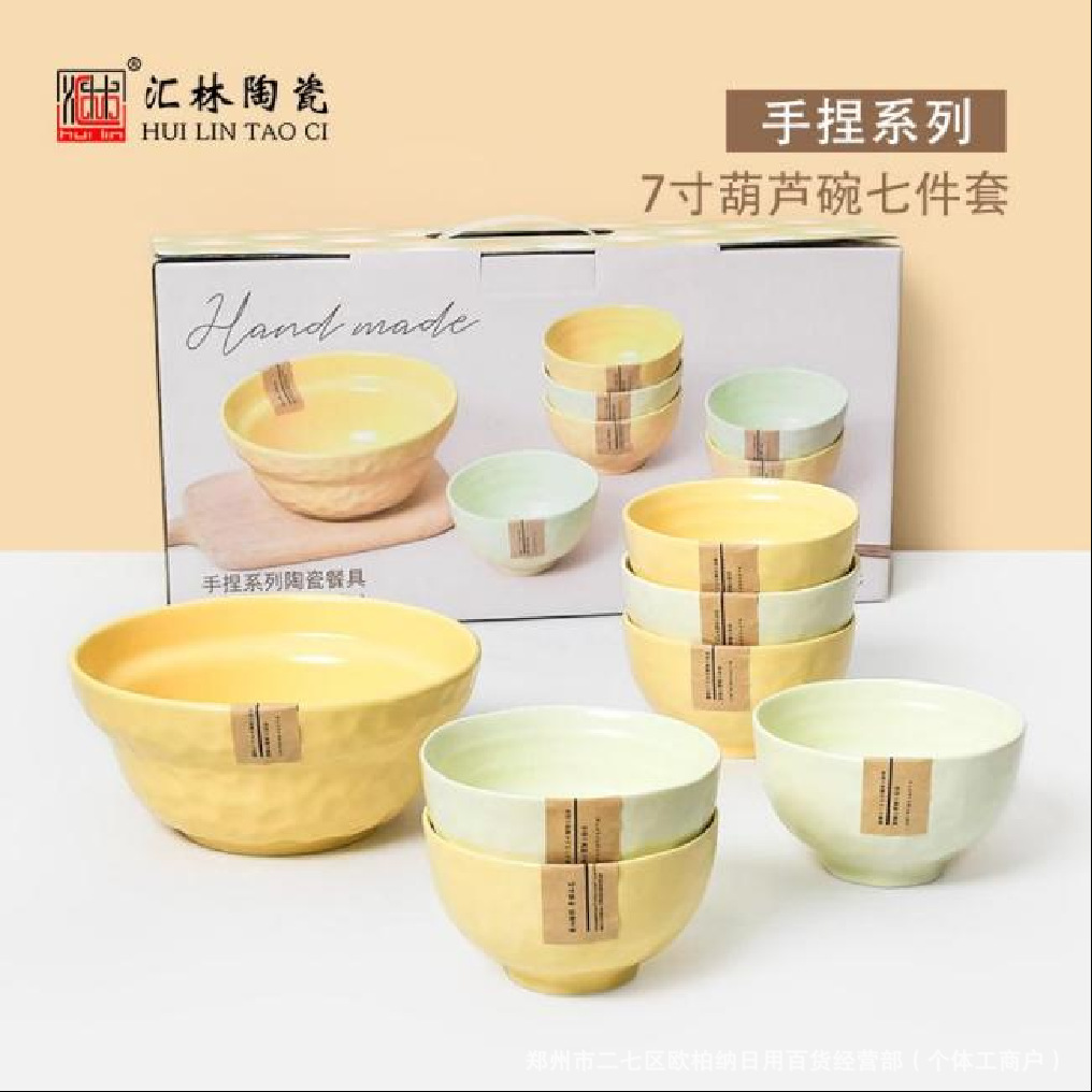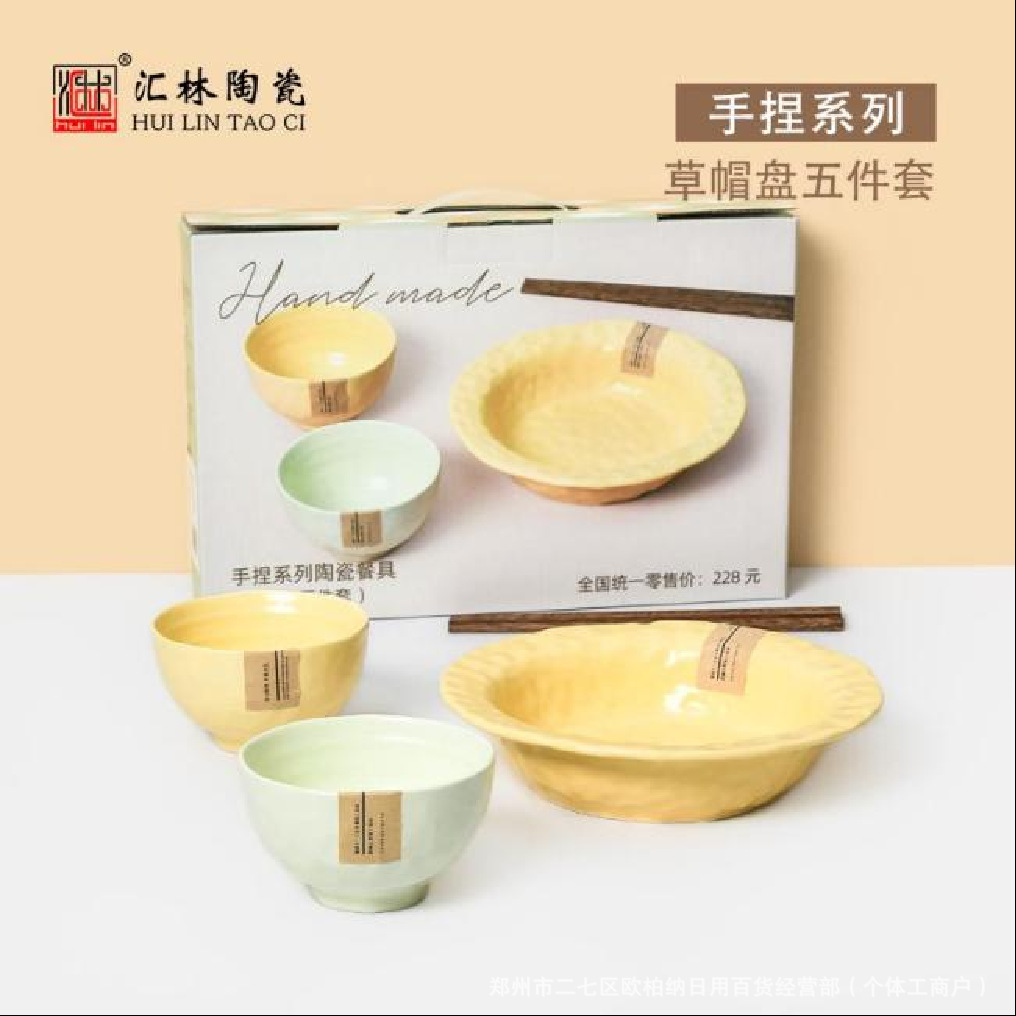 Huilin Ceramics-손으로 짜낸 조롱박 그릇 5피스 식기 세트 은행 보험 선물 오프닝 이벤트 기념품스토어 가기
