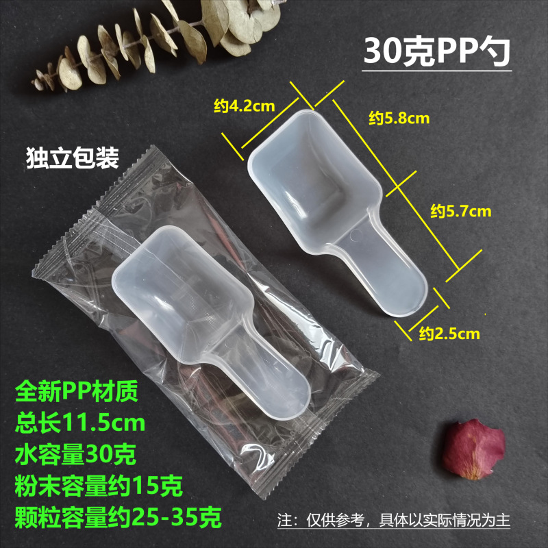 도매 30g 플라스틱 숟가락 포장 테이크 아웃 식기 분유 숟가락 측정 숟가락 그램 숟가락 세척 분말 숟가락 독립적 인 포장
