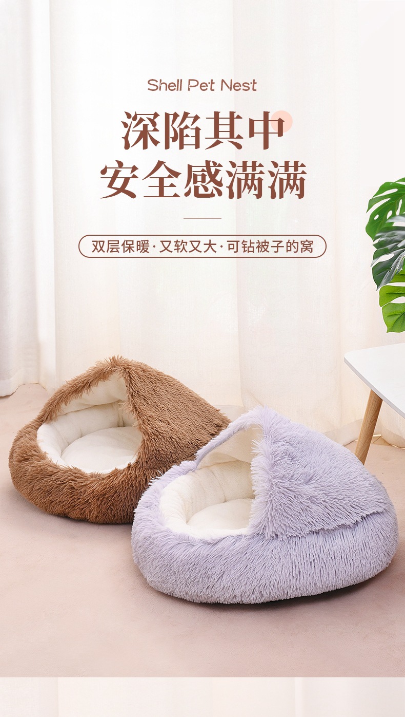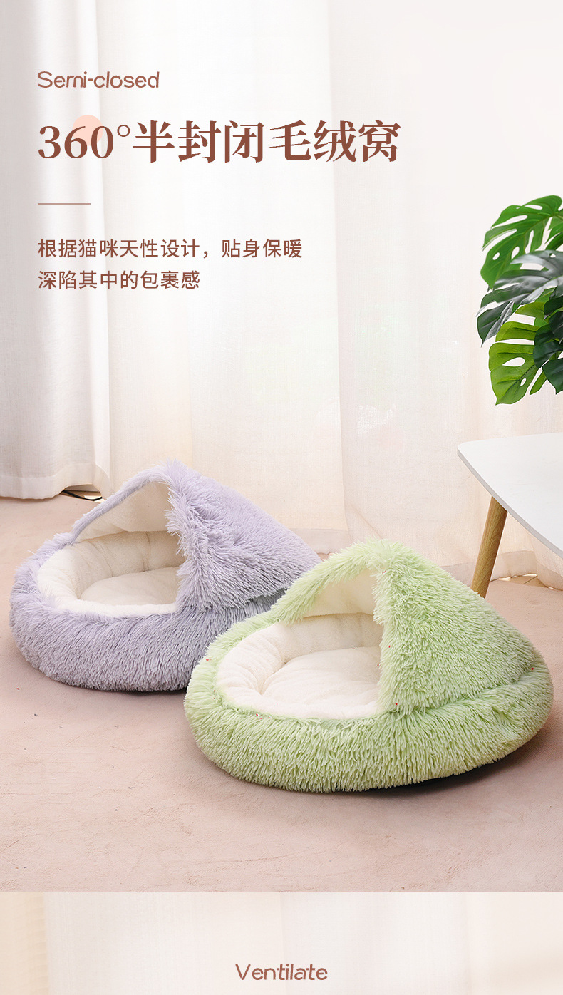 도매 애완 동물 둥지 둥근 둥지 반 폐쇄 조개 둥지 가을 및 겨울 따뜻한 고양이 둥지 반 밀폐 개 사육장 애완 동물 침대스토어 가기