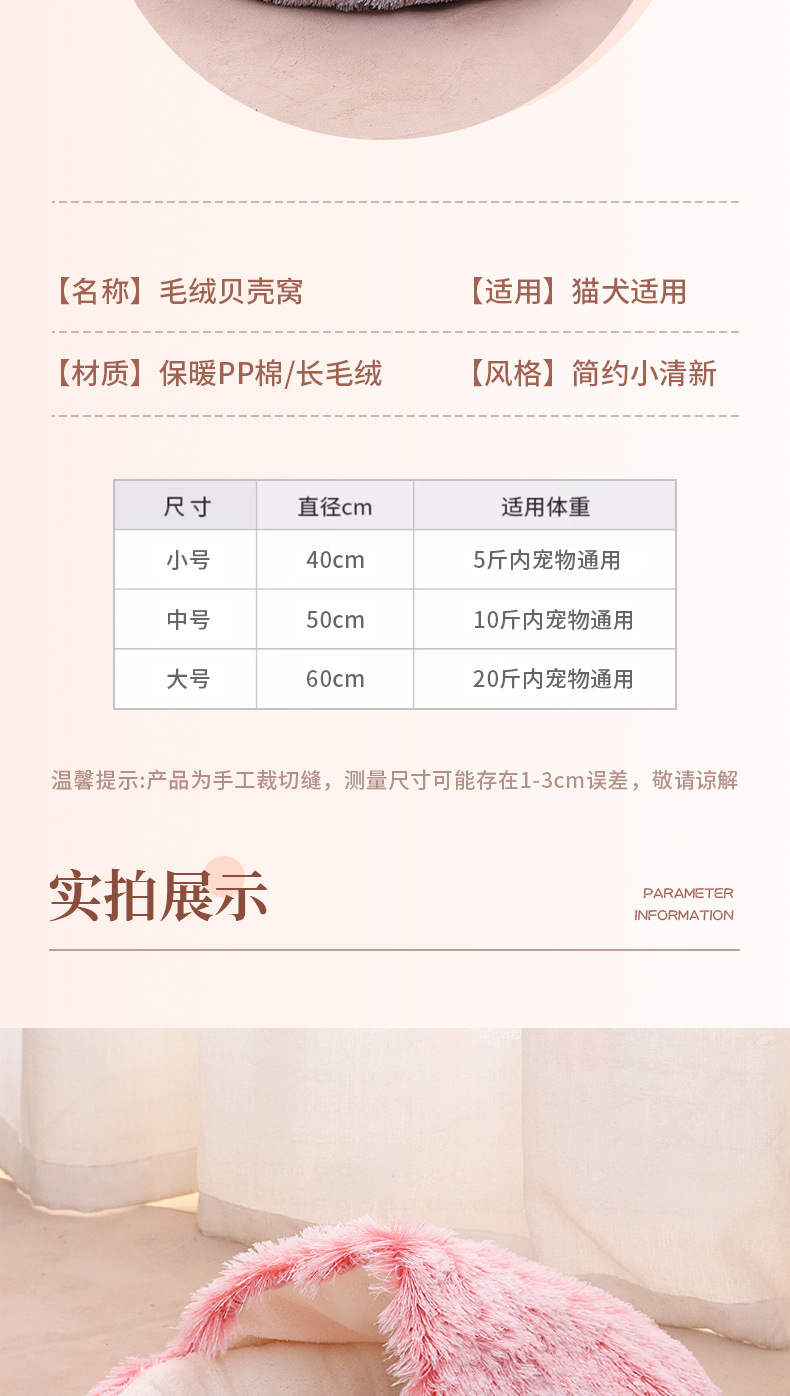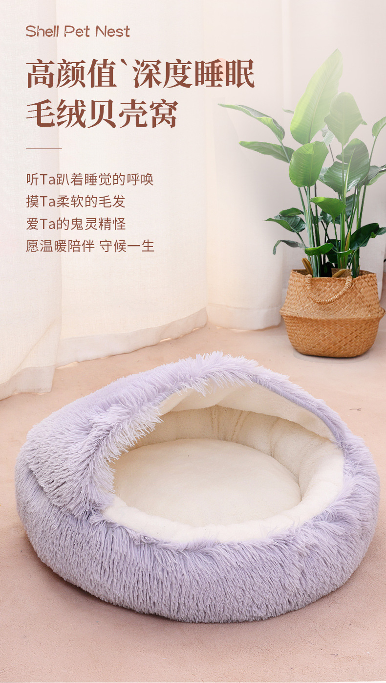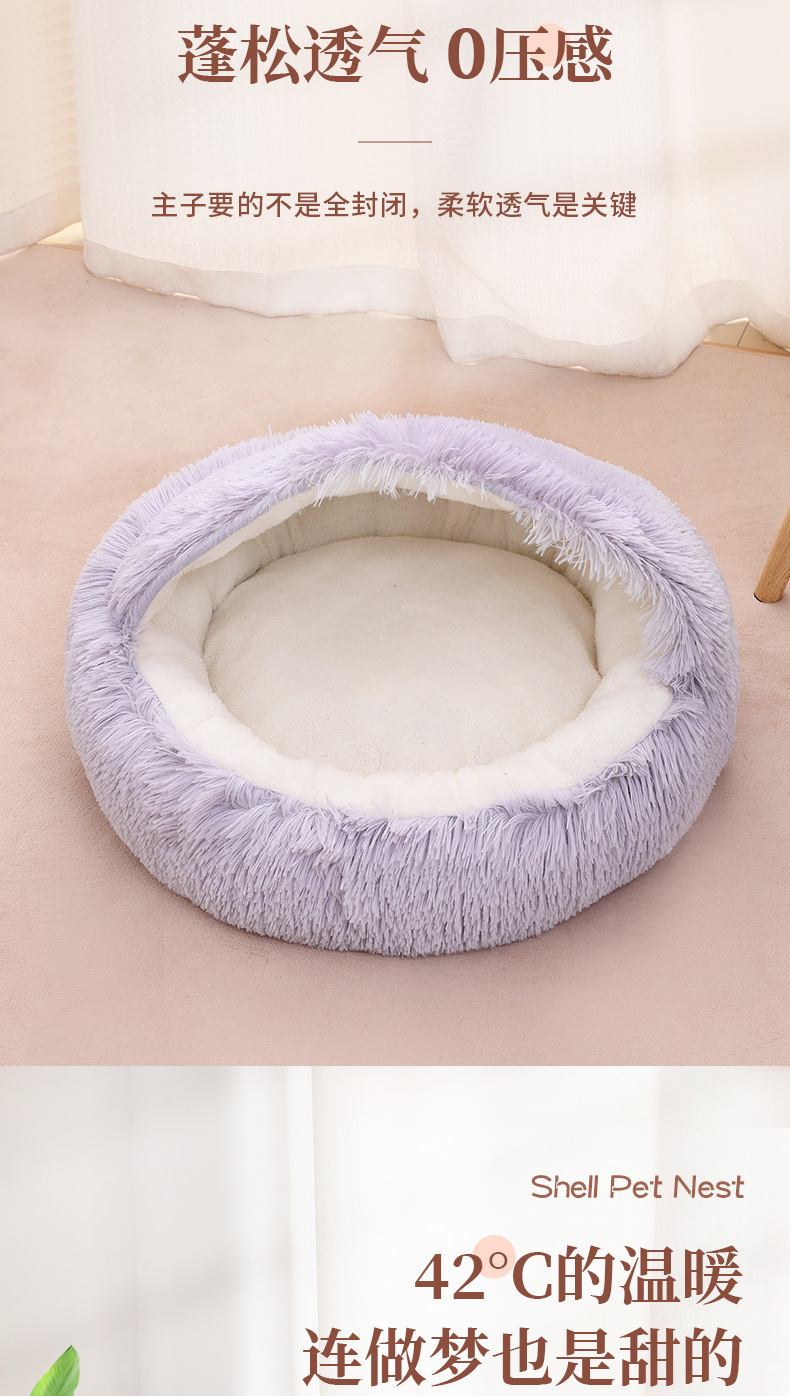 도매 애완 동물 둥지 둥근 둥지 반 폐쇄 조개 둥지 가을 및 겨울 따뜻한 고양이 둥지 반 밀폐 개 사육장 애완 동물 침대