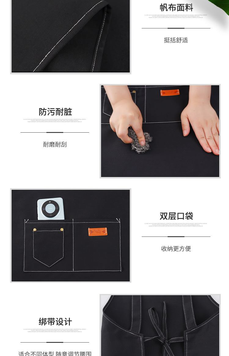인쇄 가능한 로고 방수 및 내유성 캔버스 면 앞치마 커피 숍 주방 홈 허리 원예 방수 작업 앞치마