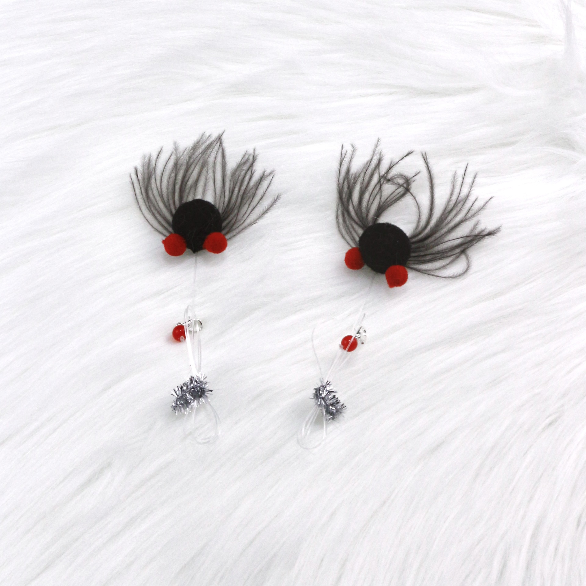 特点:有多条毛茸茸的腿轻轻的摆动就会飘动搭配40厘米长线逗猫更尽兴。
