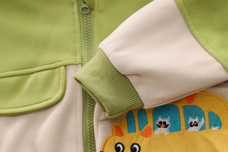 어린이 착용 소년 가을 착용 세트 2024 새로운 아기 서양식 아기 어린이 봄과 가을 만화 후드 자켓 3 피스 세트스토어 가기