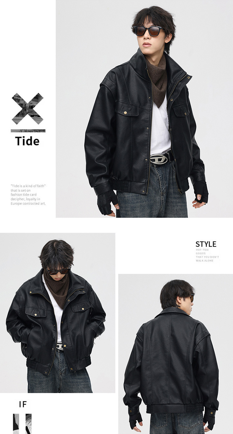 아메리칸 스타일 레트로 가죽 남자의 봄과 가을 새로운 가죽 자켓 남자 올 매치 수직 칼라 패션 브랜드 잘 생긴 남자 자켓스토어 가기