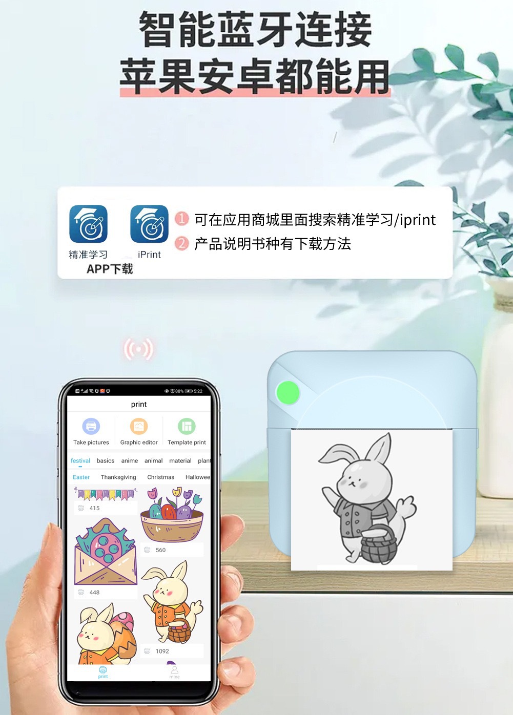 국경 간 새로운 포켓 미니 프린터 학생 잘못된 주제 휴대용 블루투스 사진 손 계정 라벨 열 프린터