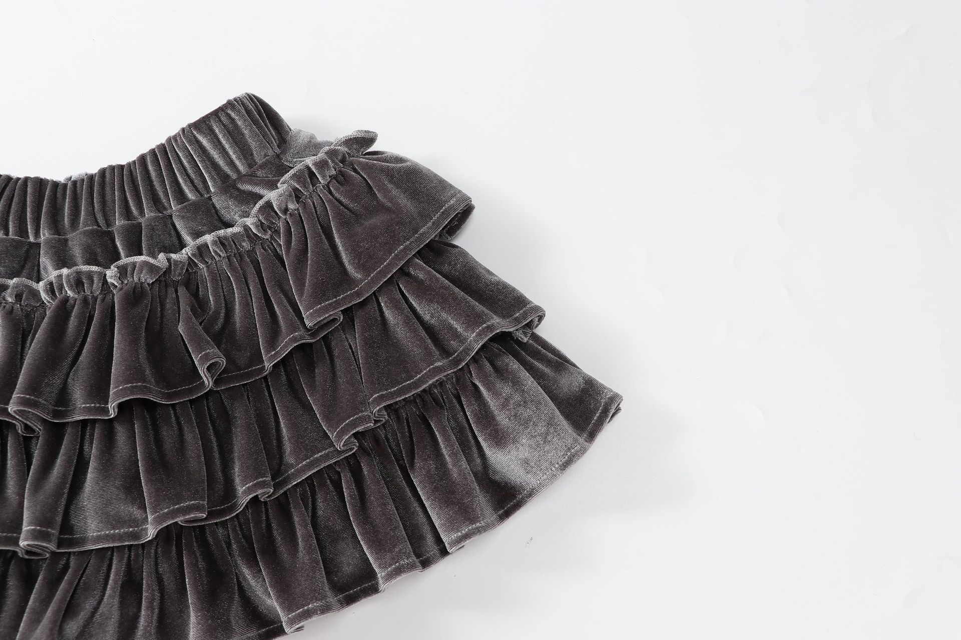 • 실버 그레이 벨벳 3겹 케이크 스커트