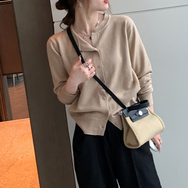 코어 스플릿 원사 니트 카디건 재킷 가을 여성 2025 새로운 스타일 초가을 스웨터 루즈 소프트 왁시 탑스토어 가기