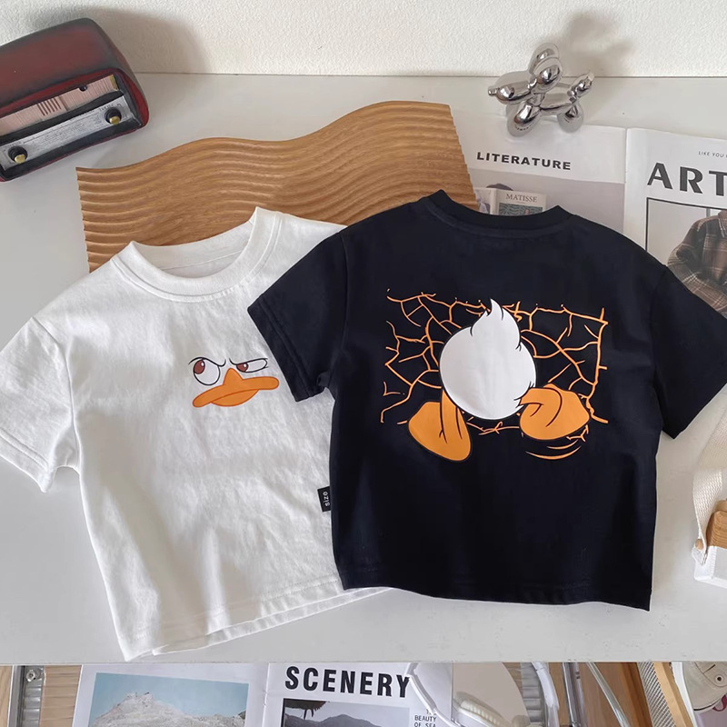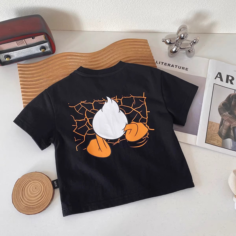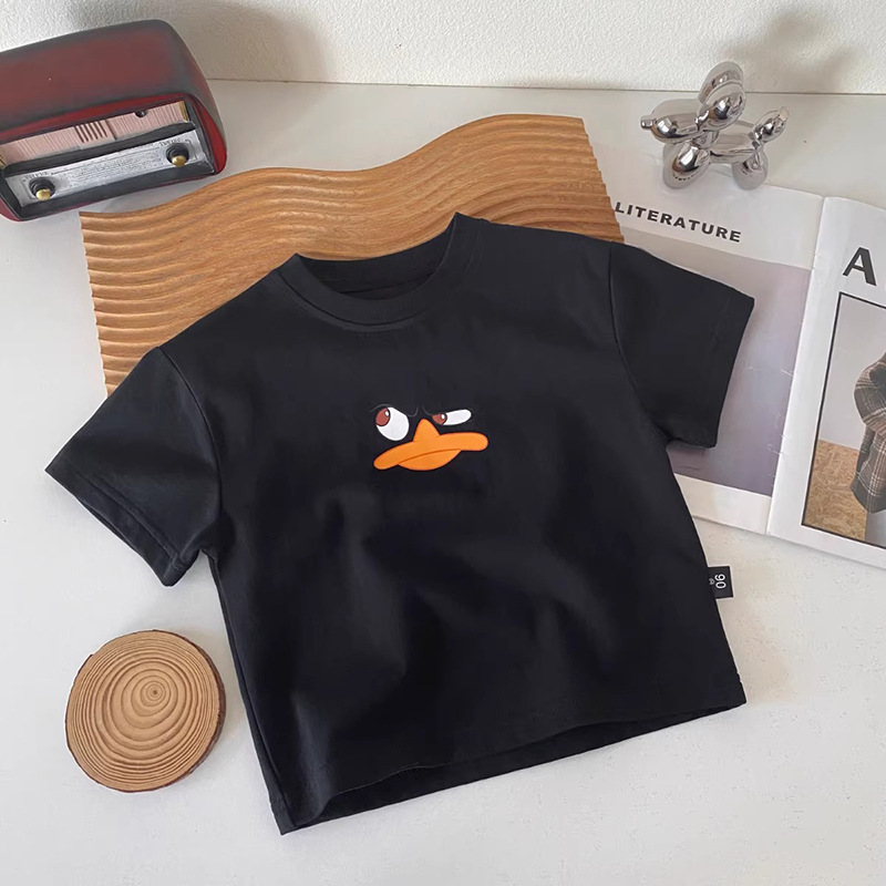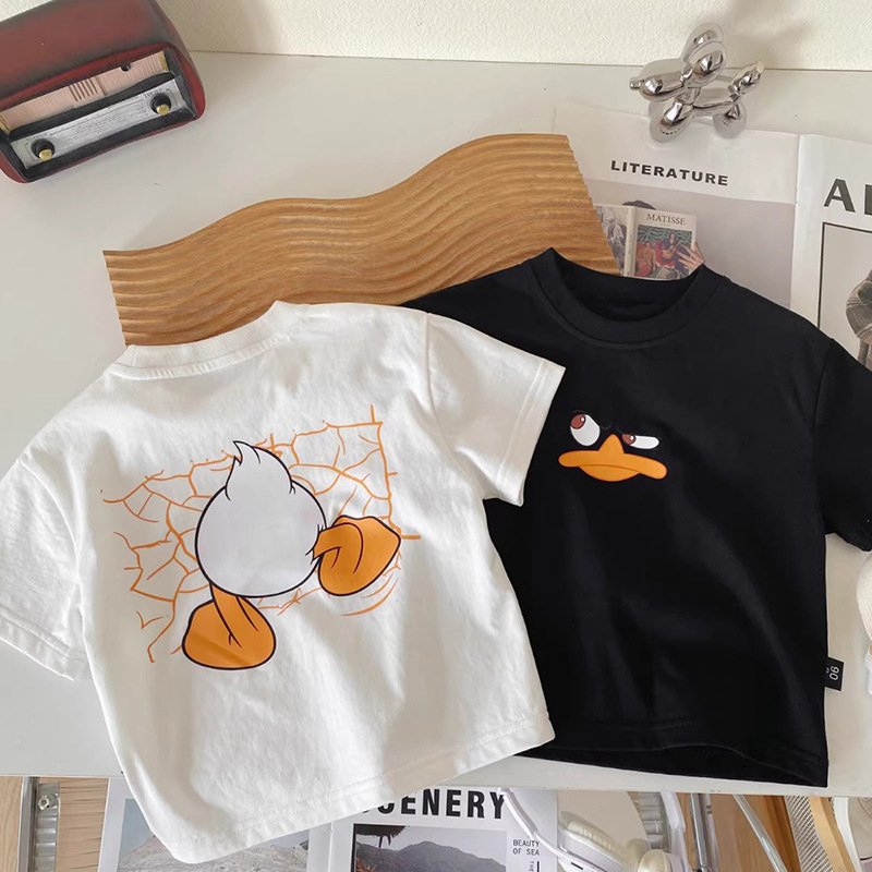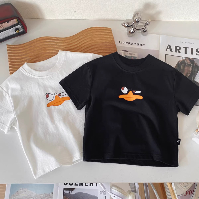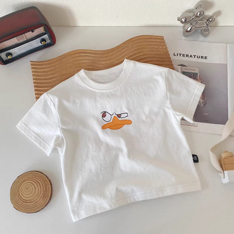 순수 코튼 어린이 반팔 티셔츠 여름 2025 소년과 소녀를위한 새로운 귀여운 아기 만화 캐주얼상의