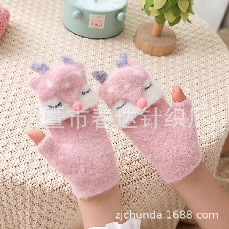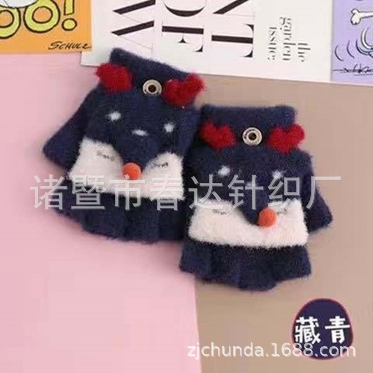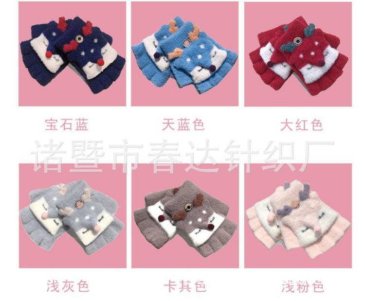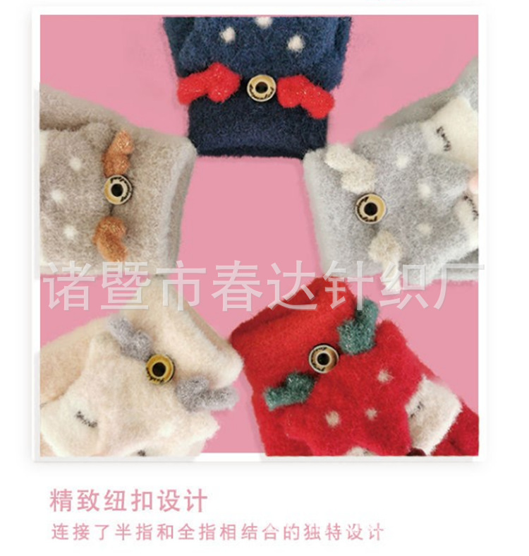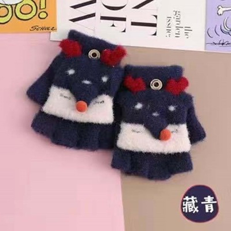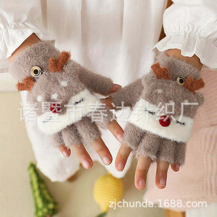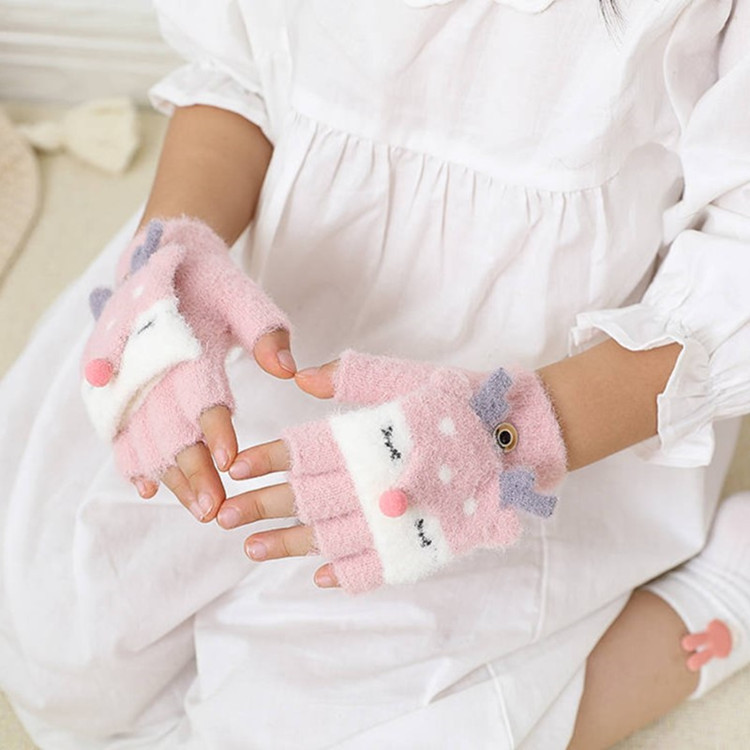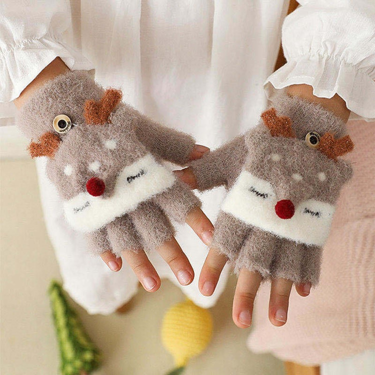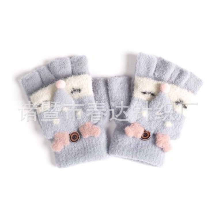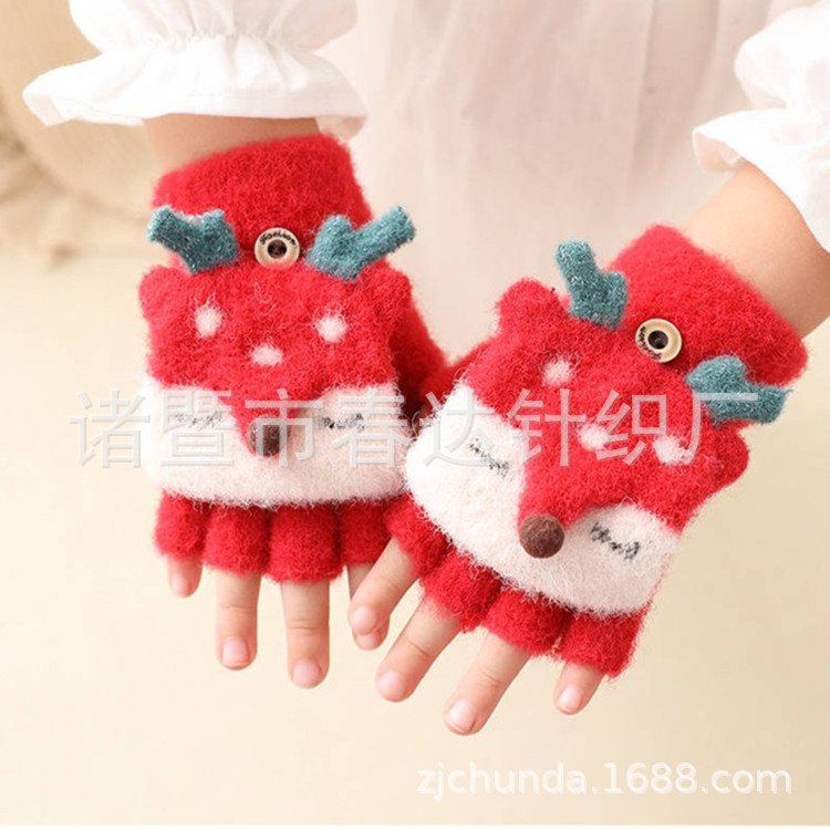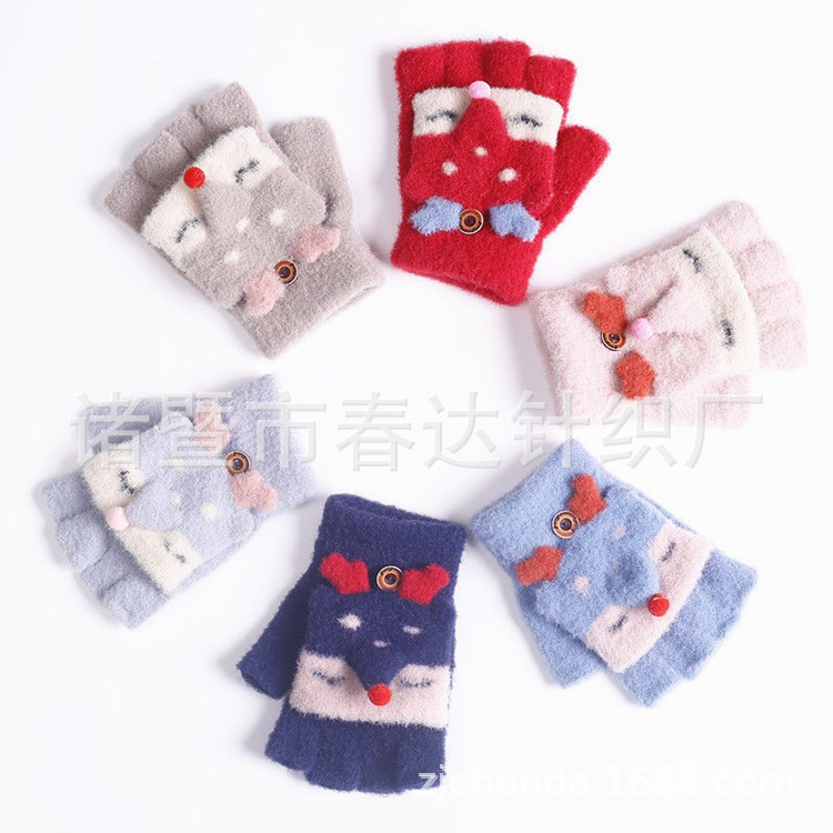 어린이 플립 장갑 남자와 여자의 가을 겨울 학생 반 손가락 오픈 손가락 따뜻한 만화 겨울 귀여운 유치원 쓰기