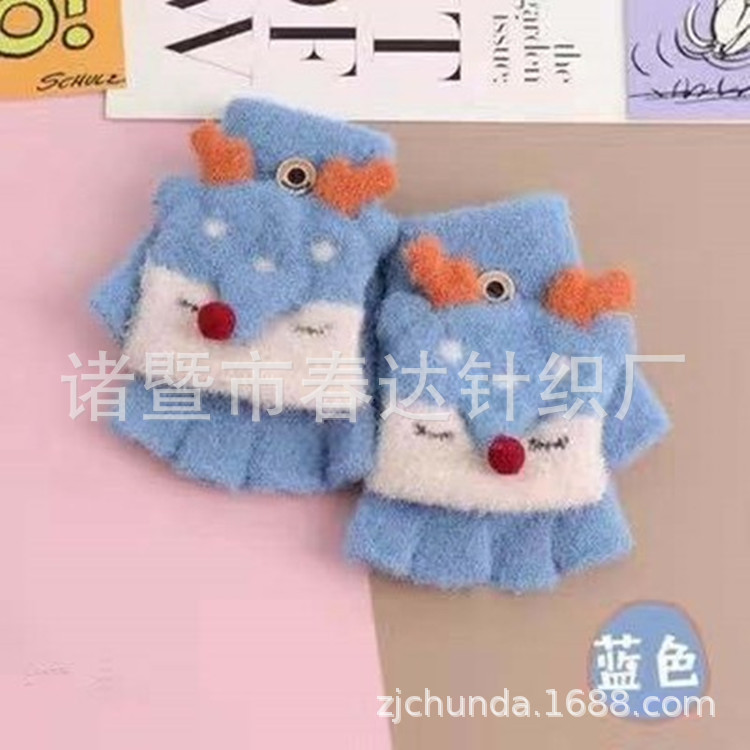 어린이 플립 장갑 남자와 여자의 가을 겨울 학생 반 손가락 오픈 손가락 따뜻한 만화 겨울 귀여운 유치원 쓰기스토어 가기