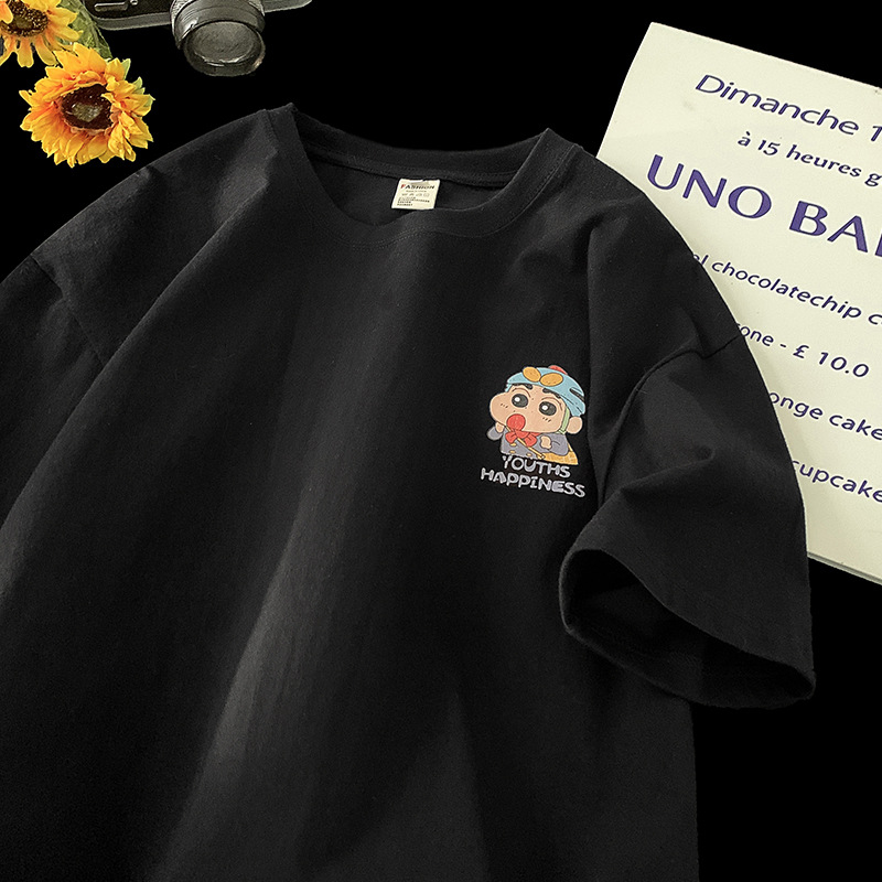 크레용 신 새로운 인쇄 반팔 티셔츠 남성용 여름 느슨한 중량급 최고 유행 브랜드 유행 캐주얼 세븐 포인트 슬리브스토어 가기